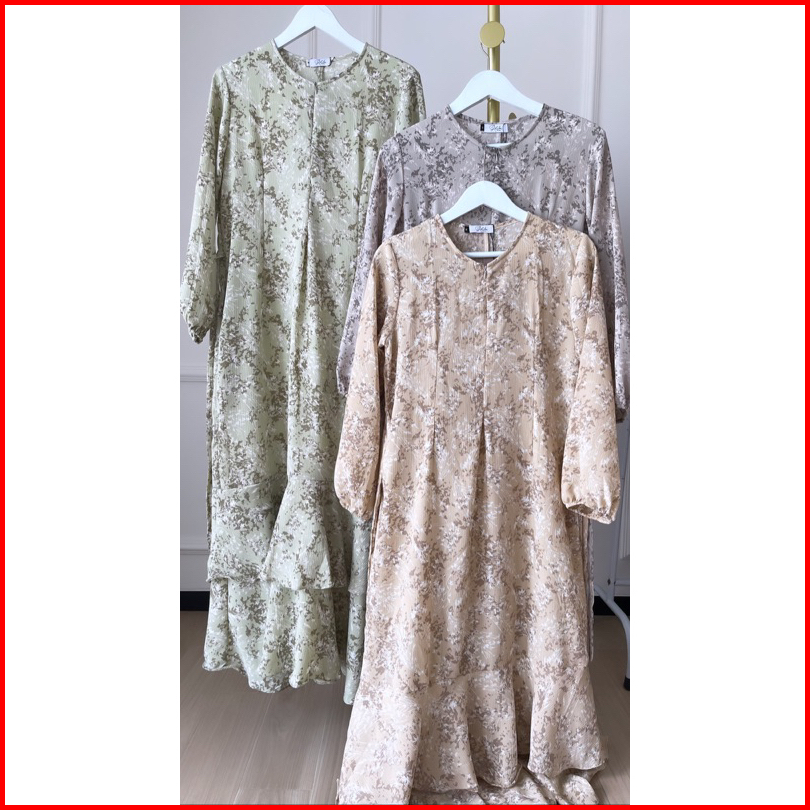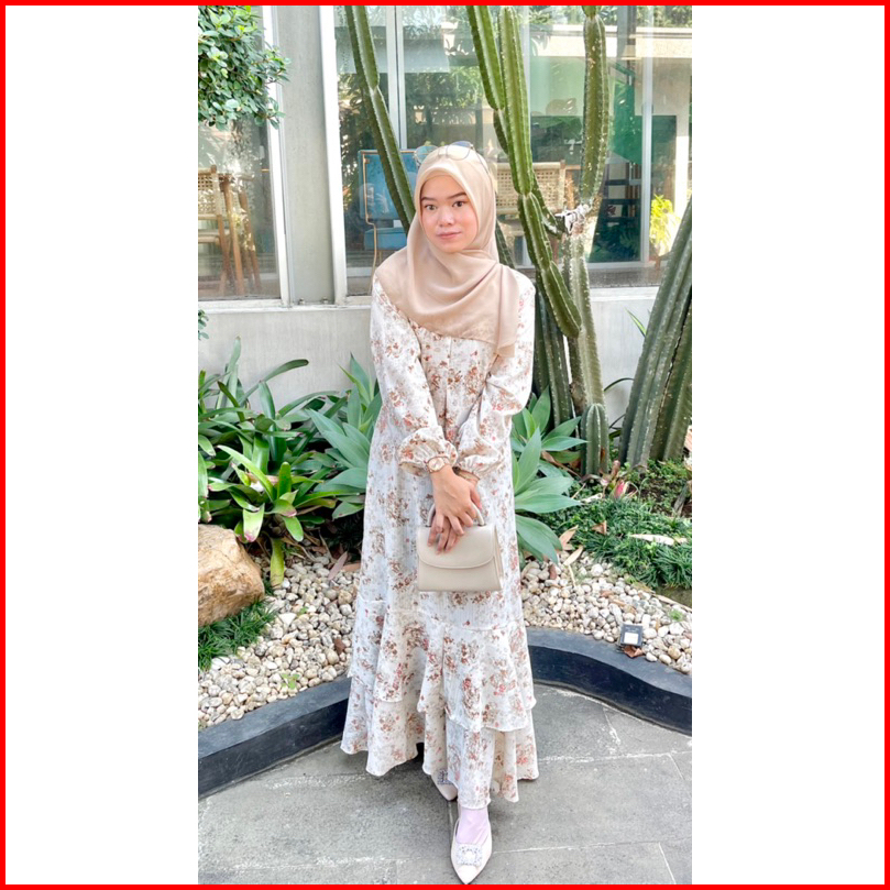 Adibabyara - Diora Dress Gamis Ruffle Terbaru Ada Size S M L Xl Busui Friendly Midi Dress Bunga Korean Dress