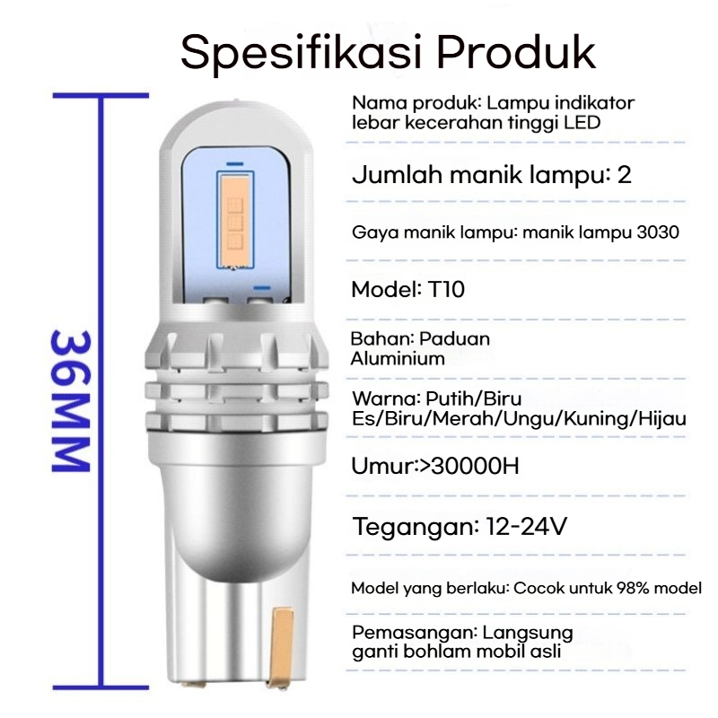 2Pcs LED T10 2SMD Lampu Mobil Motor untuk Sein&Senja Rem Kota (3 Warna)-SUPER TERANG-garansi 3 Tahun