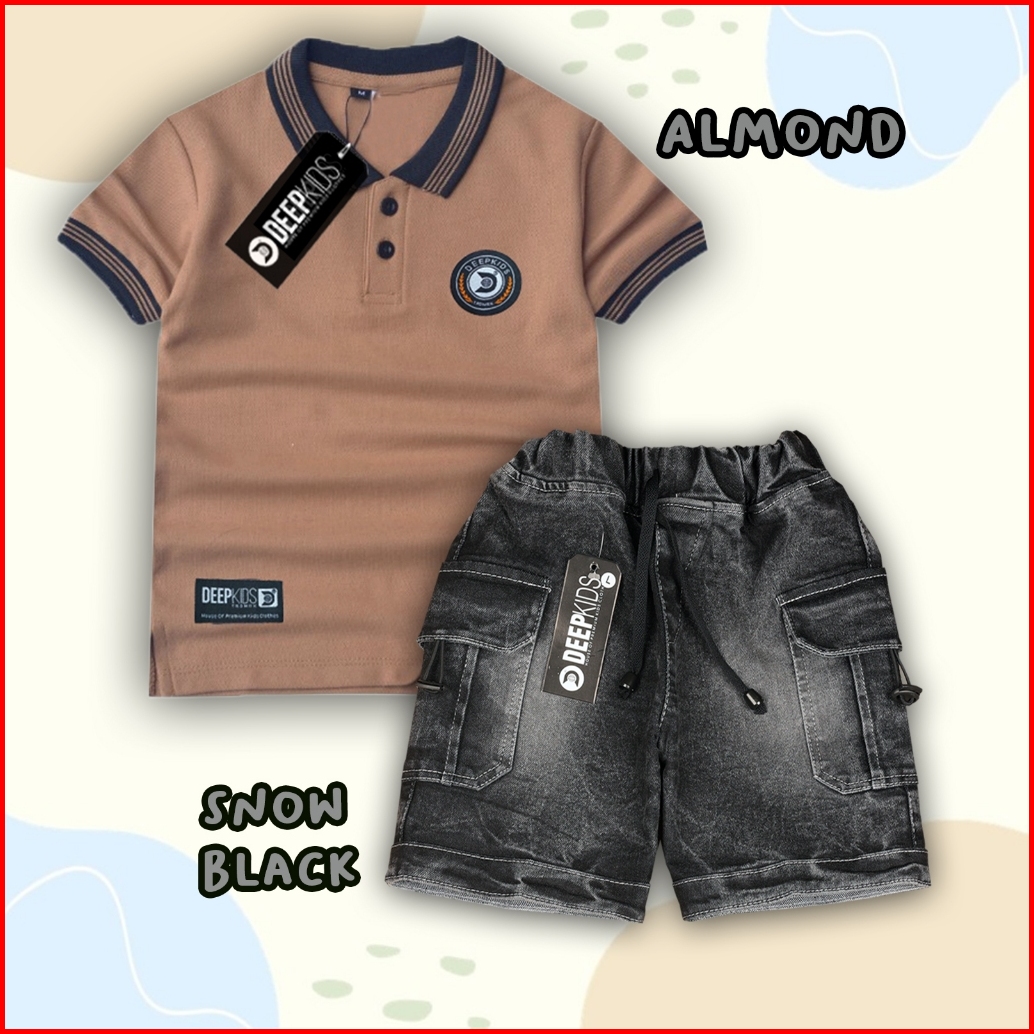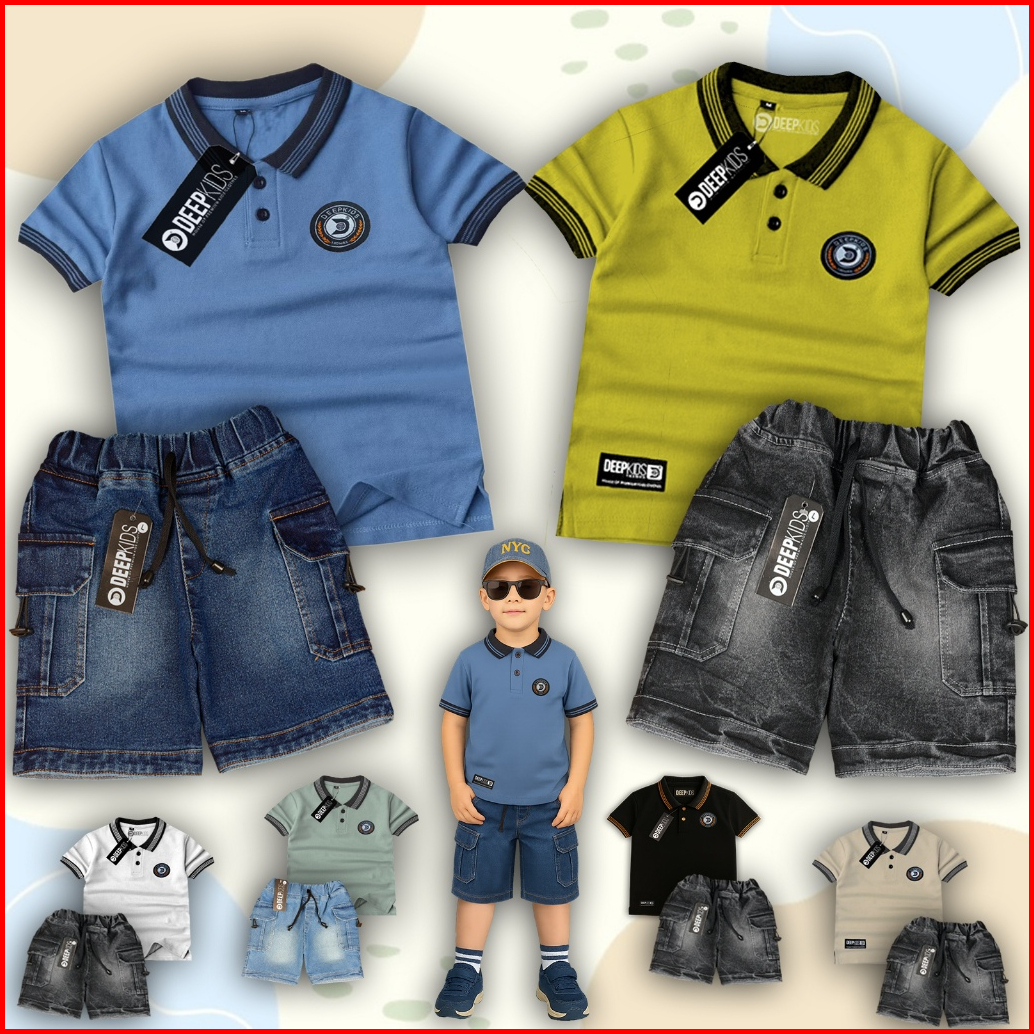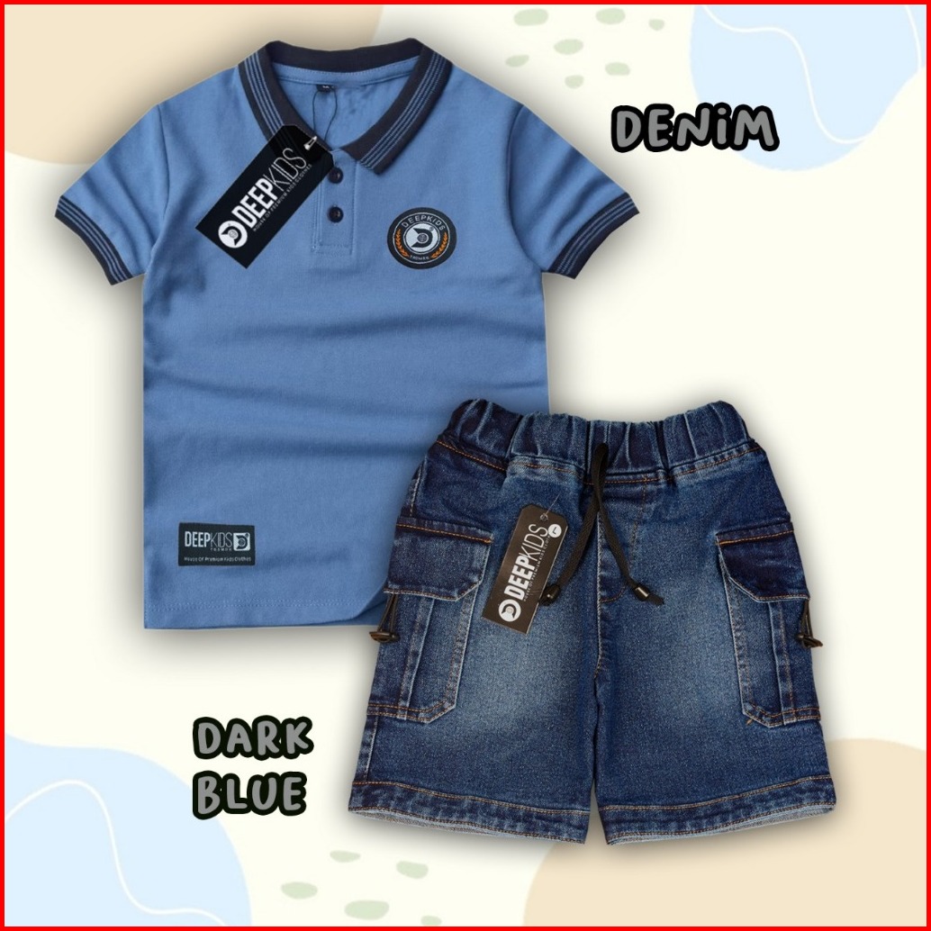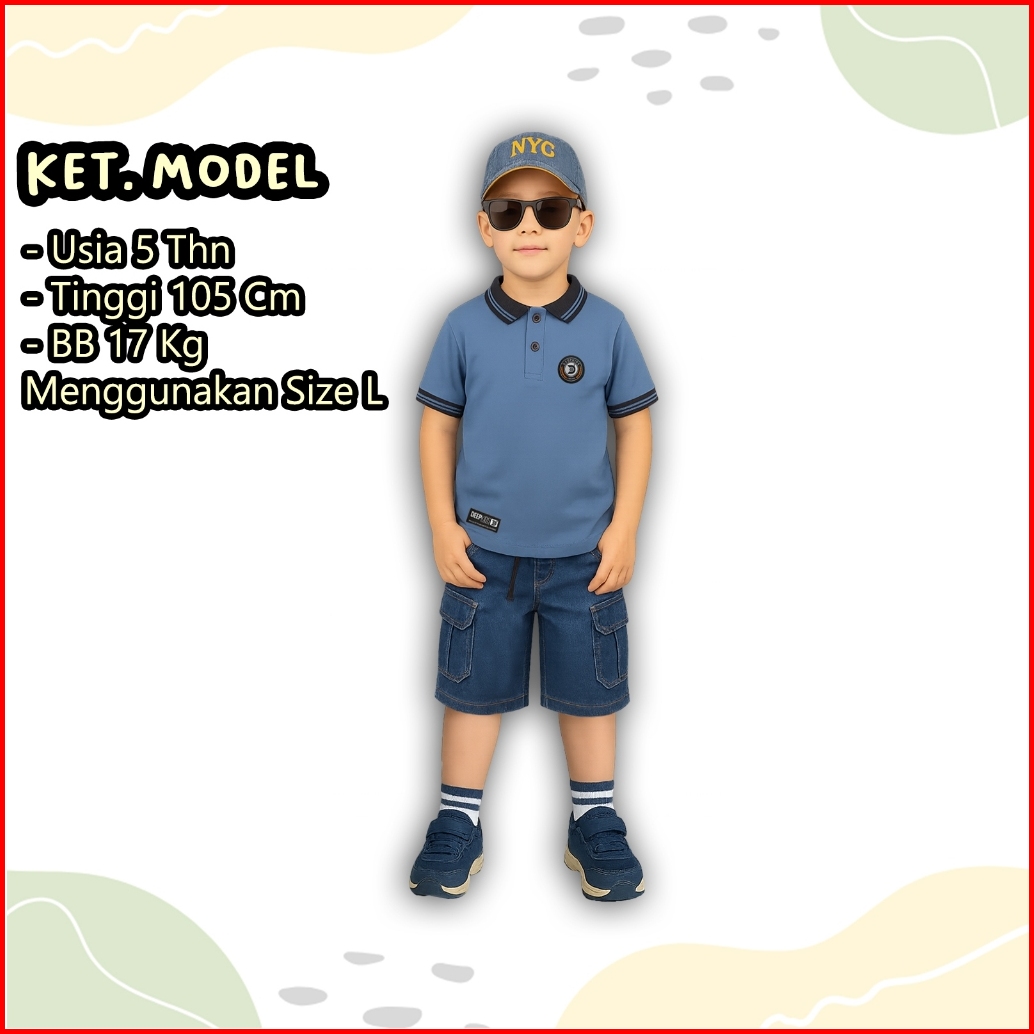 Setelan Anak Laki Laki Distro Premium Kaos Kerah Polo Celana Jeans Pendek Cargo Usia 1 2 3 4 5 6 7 8 9 10 11 12 Tahun Kk