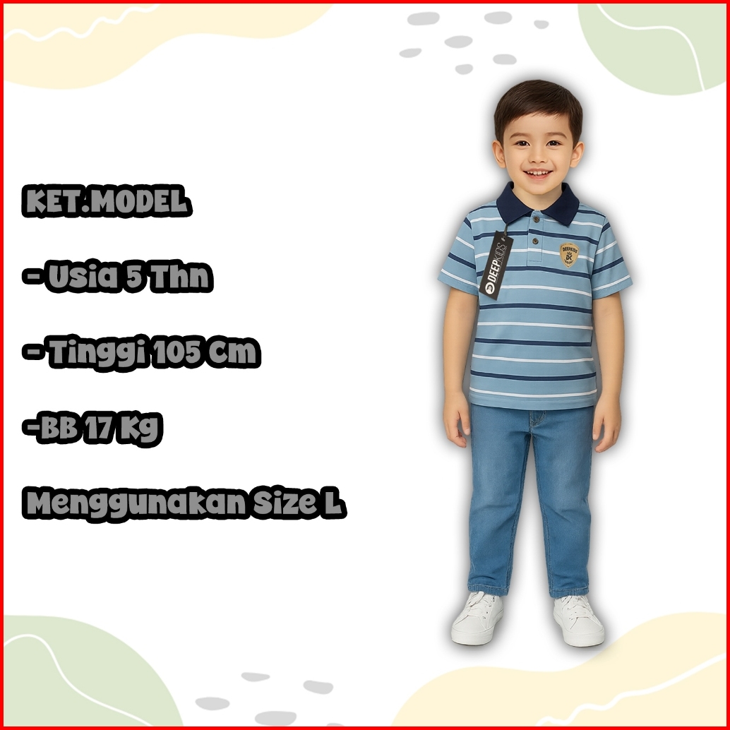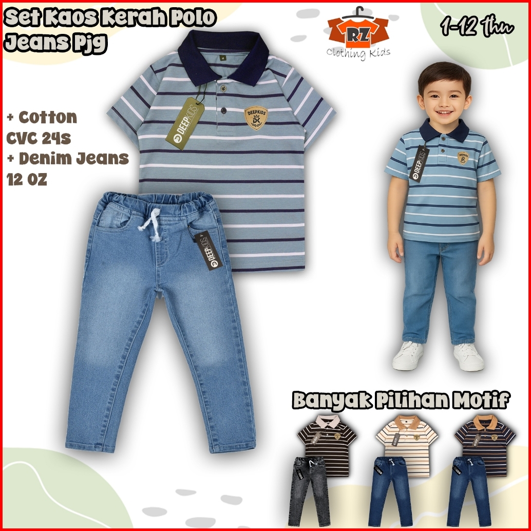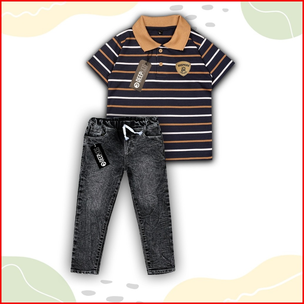 Deepkids Setelan Anak Laki Laki Baju Kaos Kerah Salur Celana Jeans Panjang Bahan Cotton Cvc 24s Jeans Panjang Usia 1 2 3