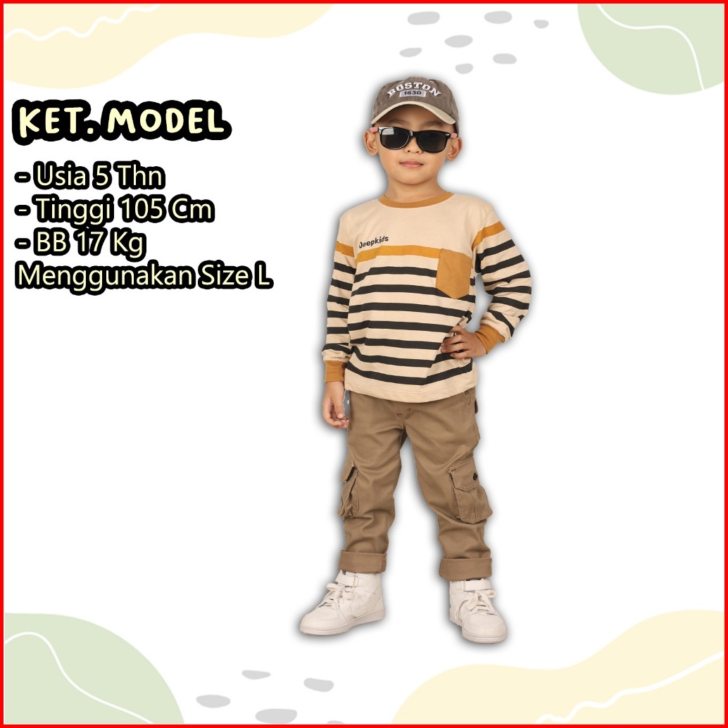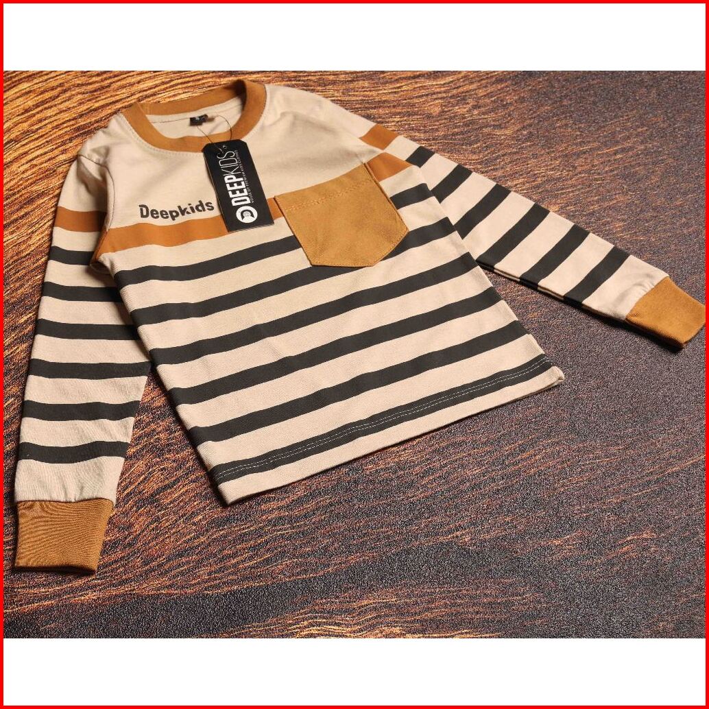 Deepkids Baju Kaos Anak Lengan Panjang Motif Salur Saku Bahan Cotton 30s Usia 1 2 3 4 5 6 7 8 9 10 11 12 Tahun Kaos Anak
