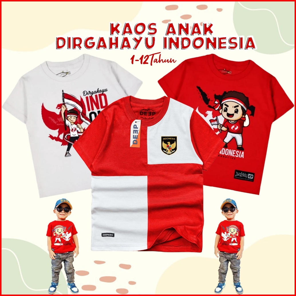 Baju Kaos Anak Dirgahayu Kemerdekaan Indonesia Usia 1-12 Tahun Bahan Cotton 30s - 17 Agustus 1945