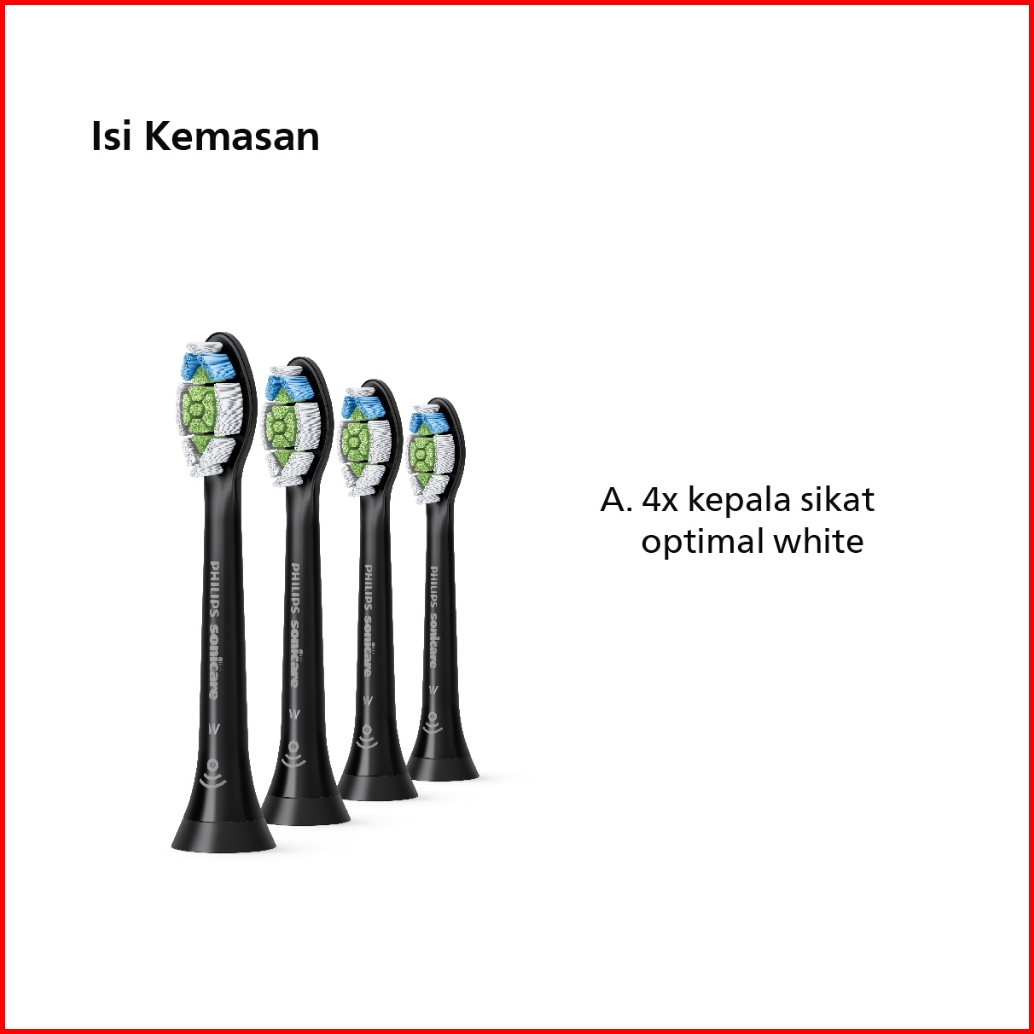 Philips Brush Replacement Kepala Sikat Gigi Optimal White Gigi Lebih Putih Dalam Satu Minggu Hitam Isi 4 Hx6064 96