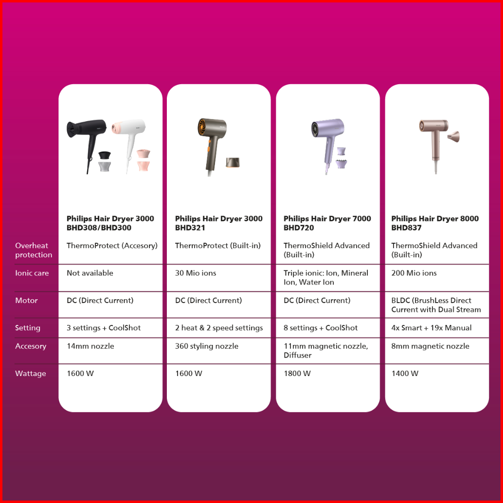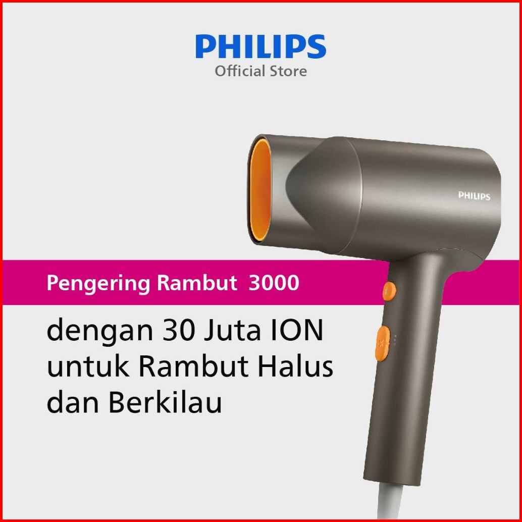 Philips Hair Dryer 3000 Pengering Rambut 30 Juta Ion Untuk Rambut Halus Dan Berkilau Abu-abu Metalik Bhd321 00