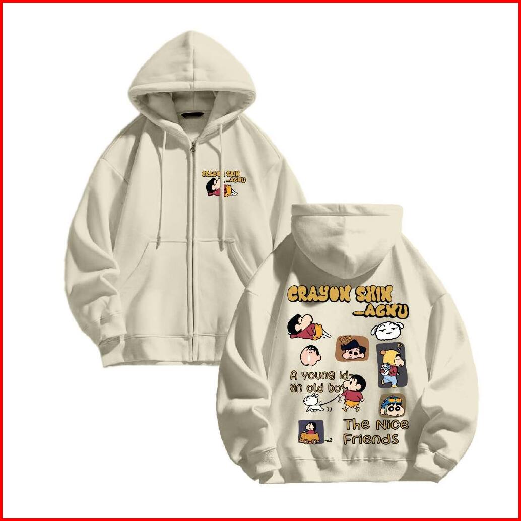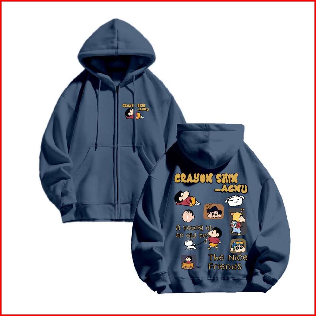 Fenjack Hoodie Zipper Crayon Shin Size M-xxl - Pria Wanita