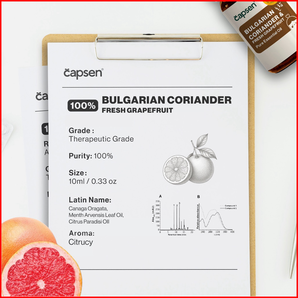 Capsen 10ml Pure Bulgarian Coriander Fresh Grapefruit Essential Oil 100 Murni Aromatherapy