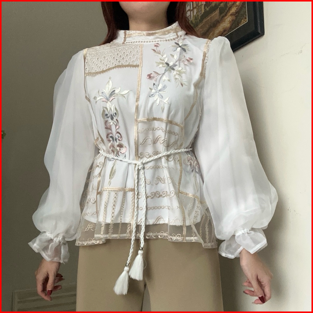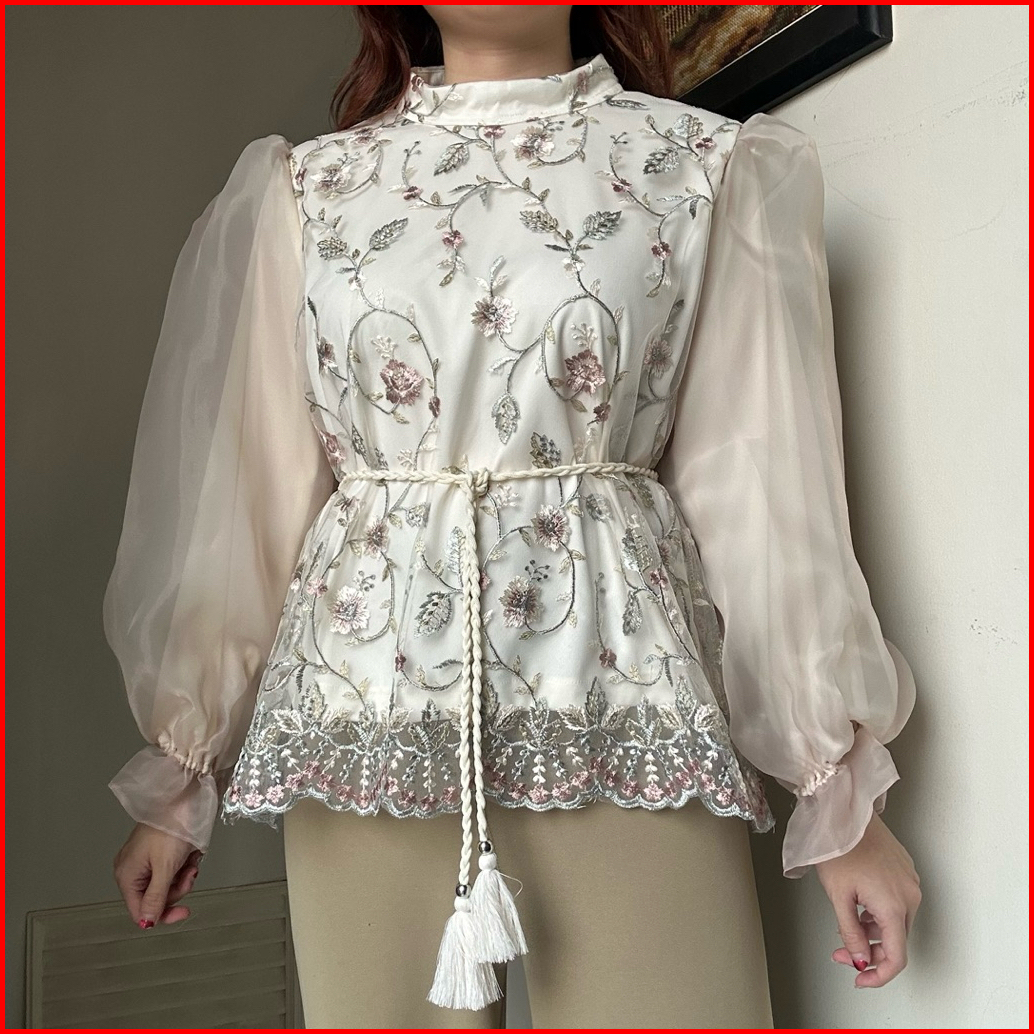 Salsa Bkk Top Atasan Blouse Kemeja Wanita Organza Bordir Renda Katun Viral Korean Style By Biel The Label