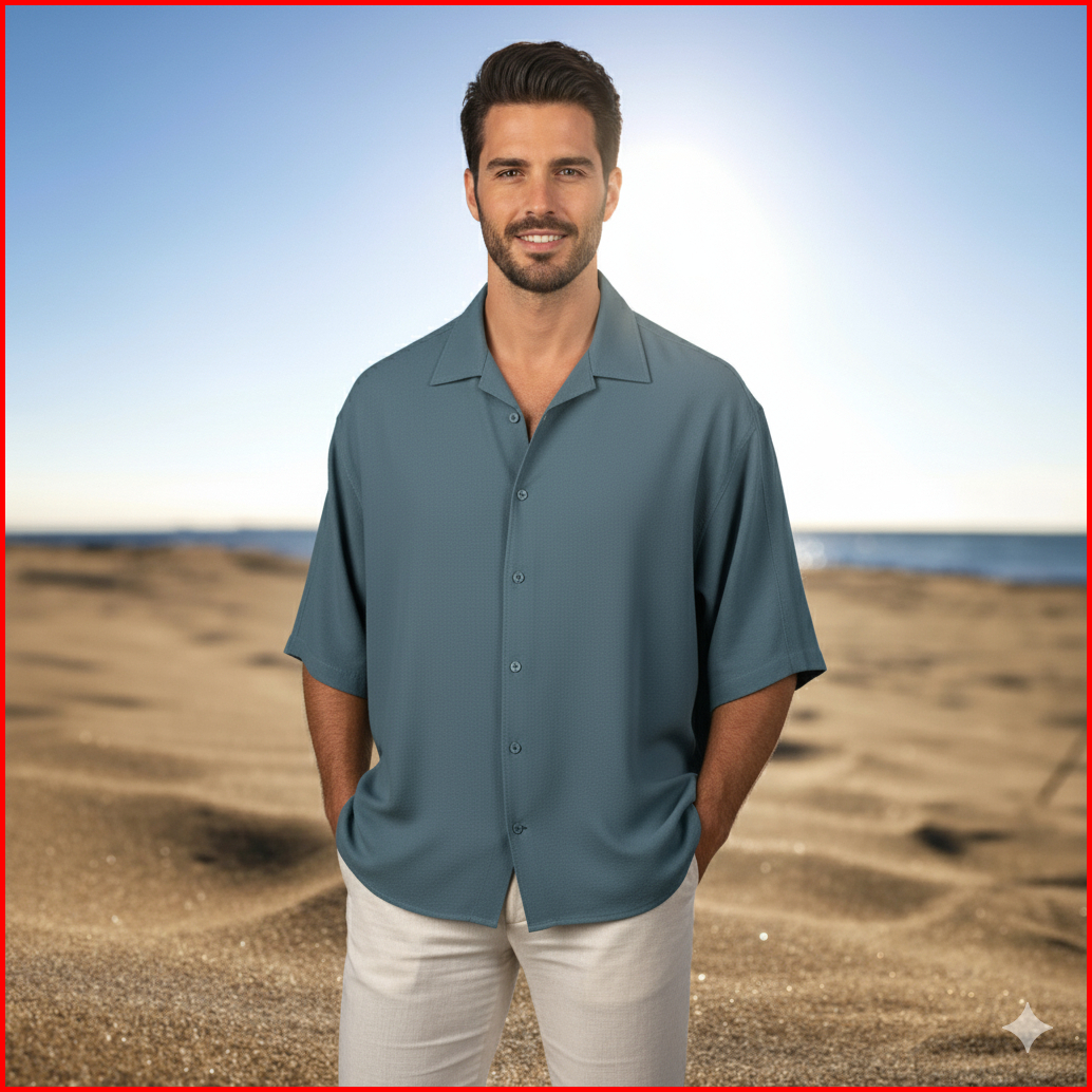 Goodethics X Kimstar - Mickout Casual Shirt Pria Bowling Oversized Pique Navy