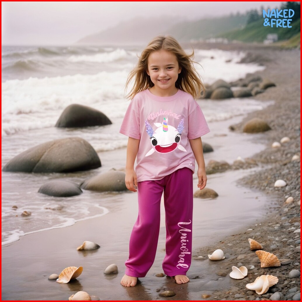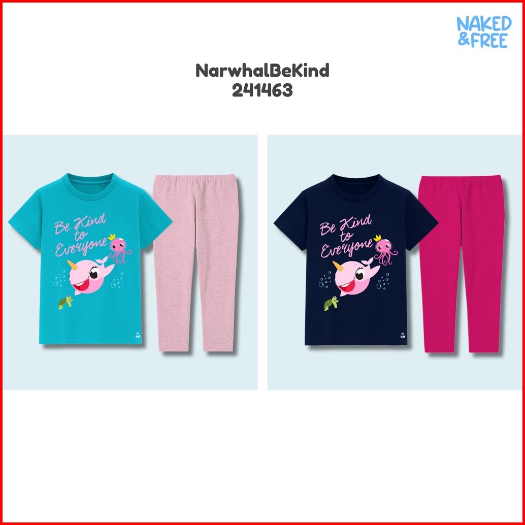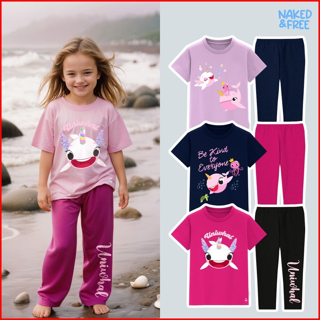 Naked Free Setelan Pendek Anak Perempuan Nafwhal Series Be Kind Uniwhal Bahan Katun Combed 30s
