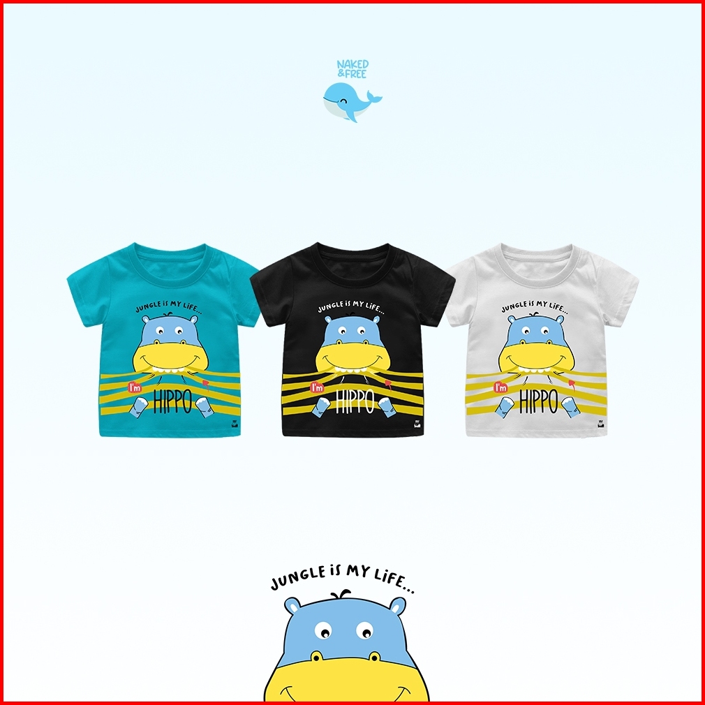 Naked Free Kaos Bayi Dan Anak Zoo Series Cute Giraffe Panda Rhino And Hippopotamus Bahan Katun