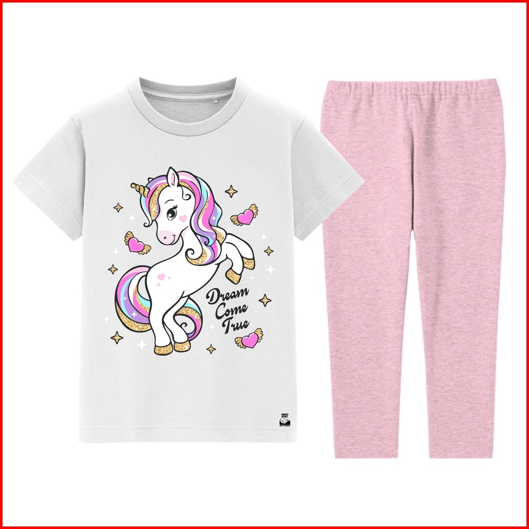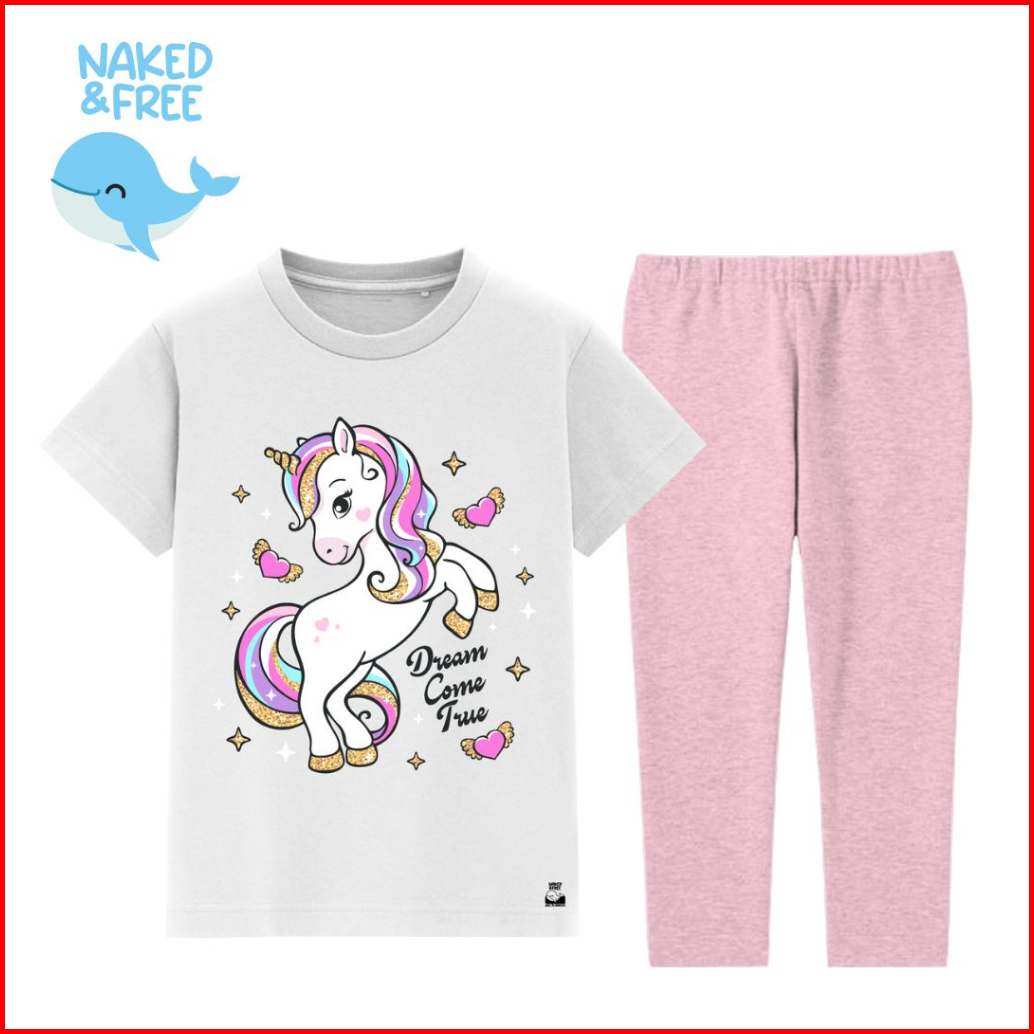 Naked Free Piyama Pendek Anak Perempuan Unicorn Dream Untuk Usia 2-8 Tahun Bahan Katun Combed