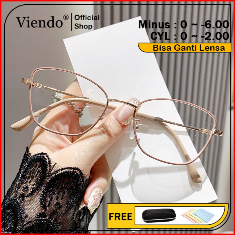 Viendo Kacamata Photocromic Minus Anti Blueray Wanita Cat Eye Frame Bluecromic Kaca Mata Optik 022