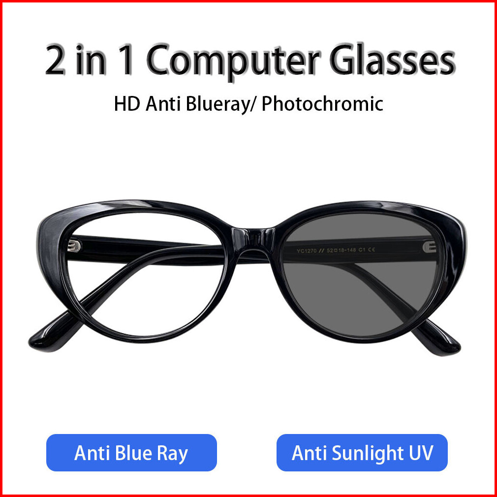 Viendo Kacamata Photocromic Minus Wanita Cat Eye Frame Silinder Anti Radiasi Blueray Kaca Mata Optik