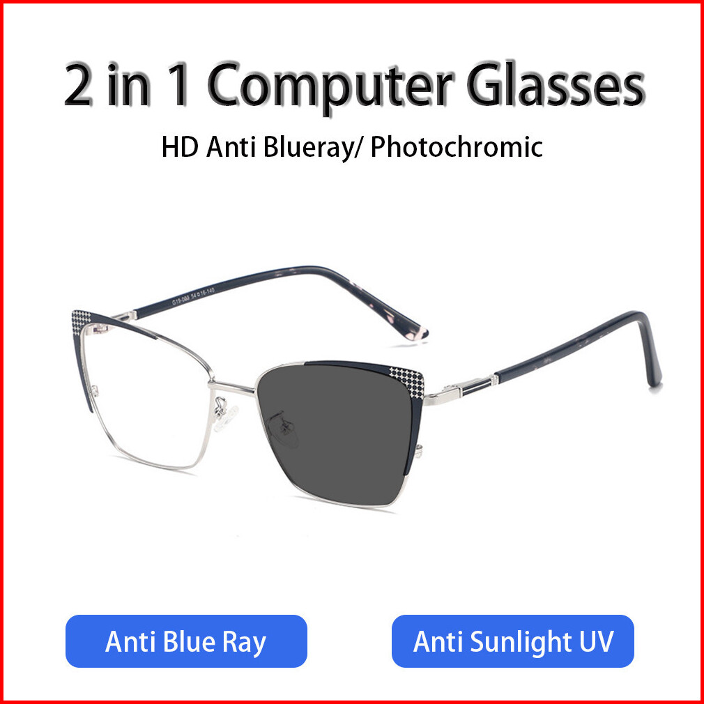 Viendo Kacamata Photocromic Wanita Cat Eye Minus Silinder Bluecromic Anti Blueray Kaca Mata Optik