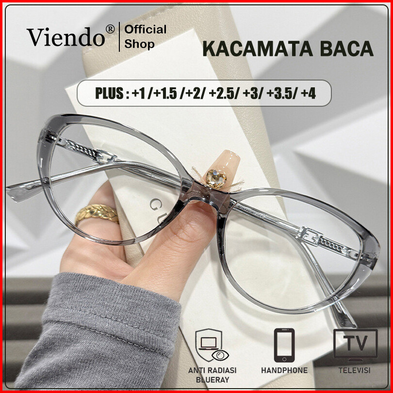 Viendo Kacamata Baca Plus Anti Radiasi Wanita Pria Cat Eye Frame Antiblueray Kaca Mata Optik Tr86073