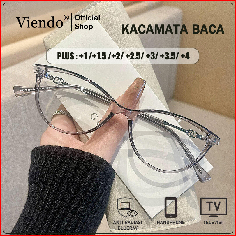 Viendo Kacamata Baca Plus Anti Radiasi Wanita Cat Eye Frame Antiblueray Kaca Mata Optik Tr30318
