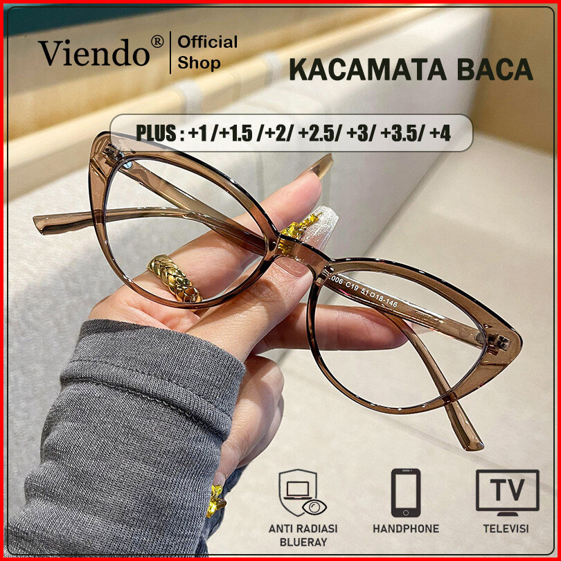 Viendo Kacamata Baca Plus Anti Radiasi Wanita Cat Eye Frame Antiblueray Kaca Mata Optik 52006