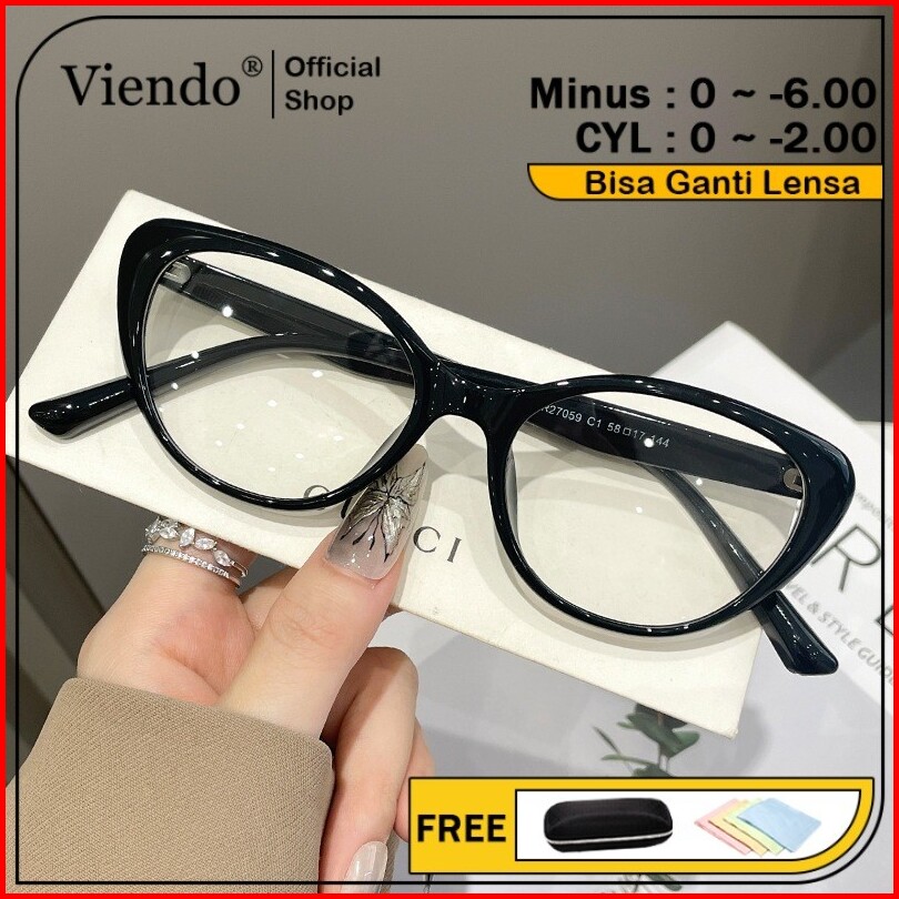 Viendo Kacamata Photocromic Anti Blueray Minus Wanita Cat Eye Frame Bluecromic Kaca Mata Optik 27059