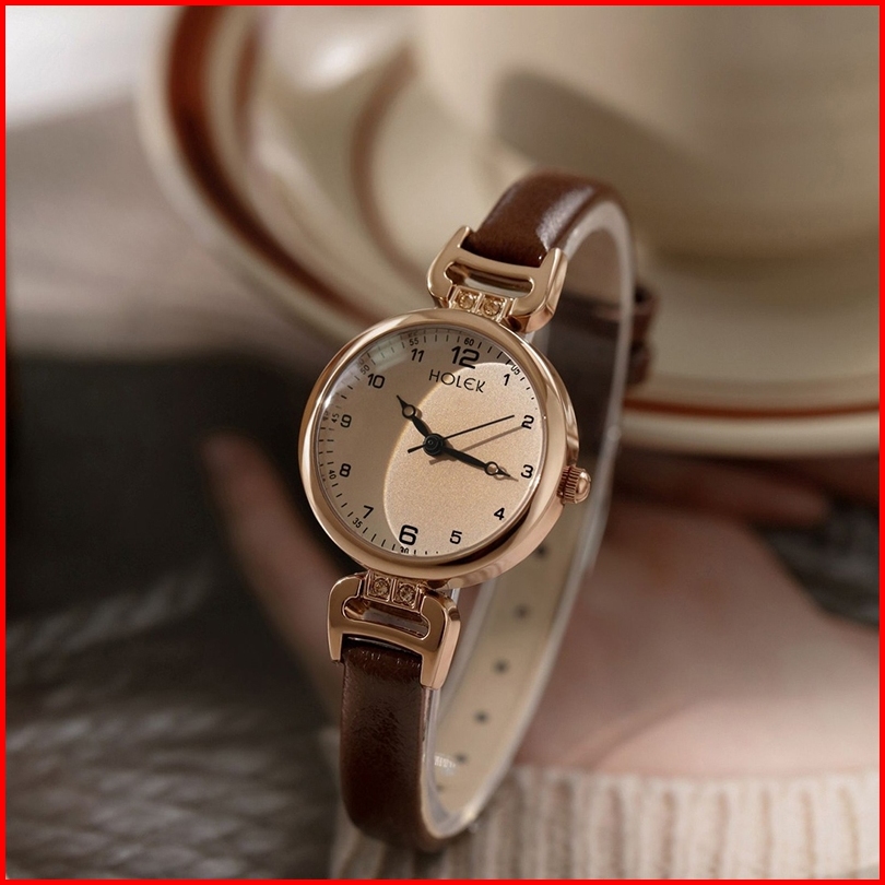 Holek 5266 Jam Tangan Wanita Anti Air Retro Perangai Kepopuleran Tali Kulit Quartz Jam Tangan Cewek