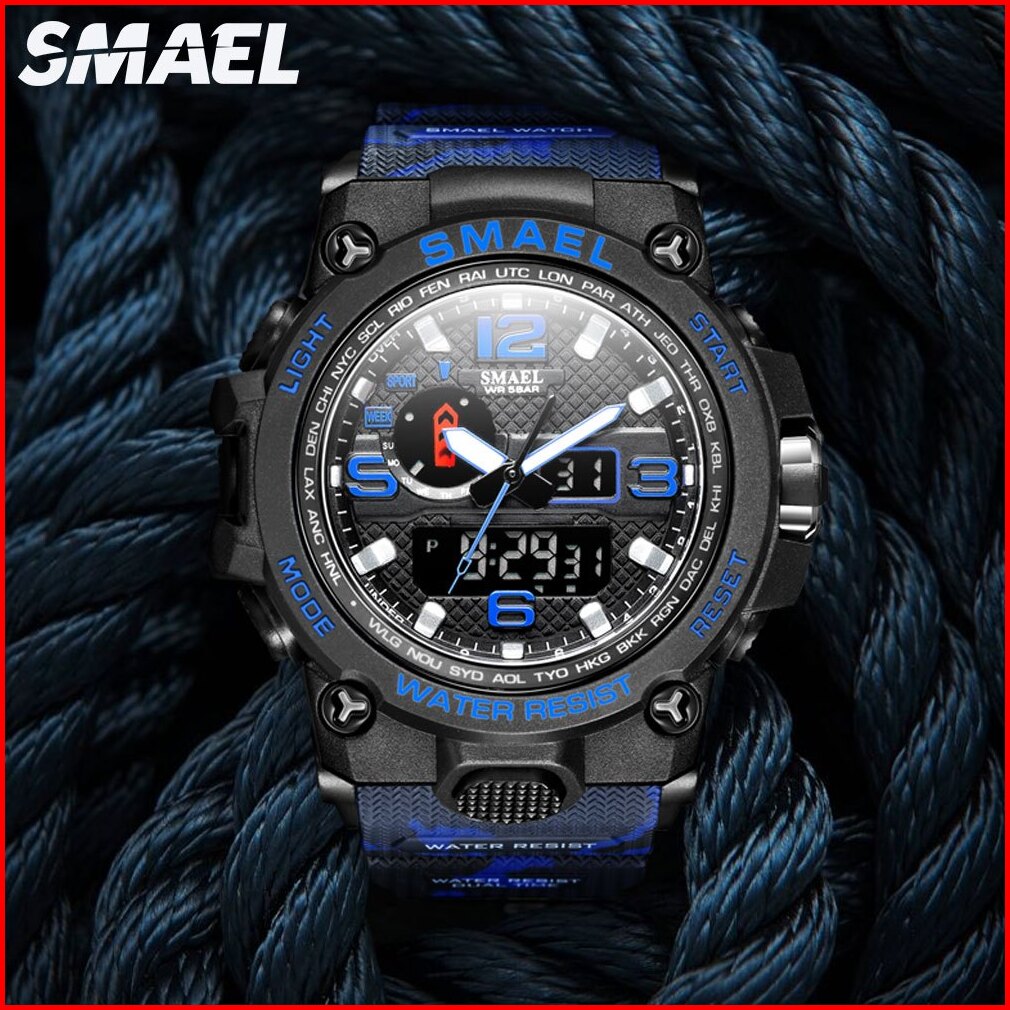 Smael 1545d Original Jam Tangan Sport Analog Digital Pria Wanita Multifungsi Tali Silikon Tahan Air Bercahaya