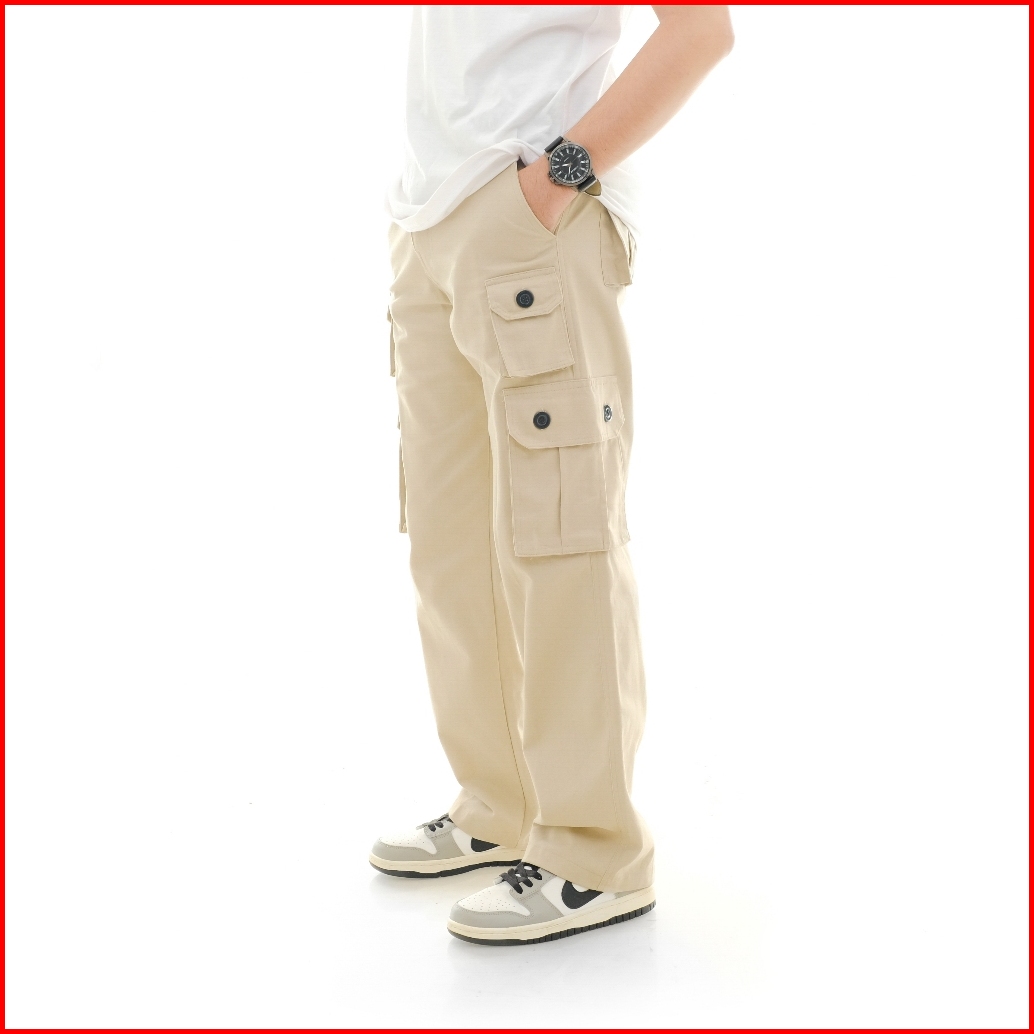 Qwertylife Long Pants Cargo Reguler Twill Pocket Cream