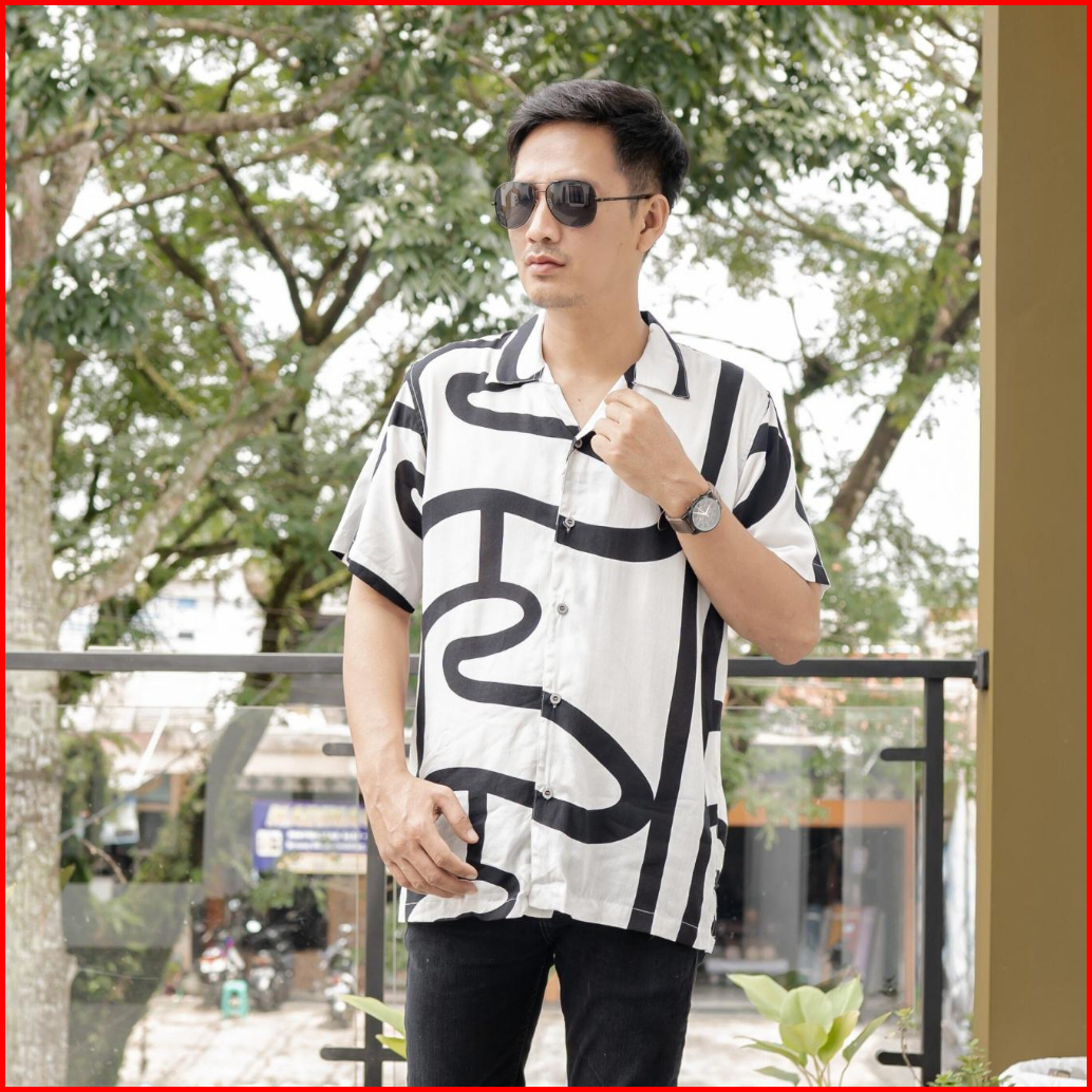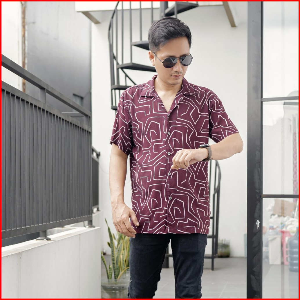 Ademinco Alvez Kemeja Pria Slim Fit Rayon Reactive Atasan Baju Pria Tropical Part 2