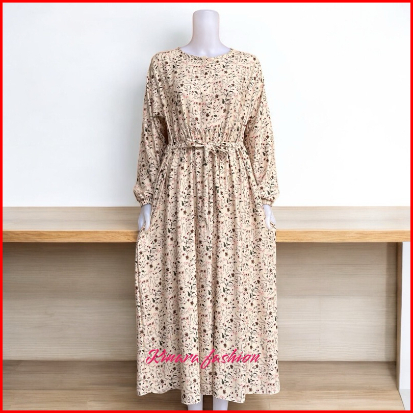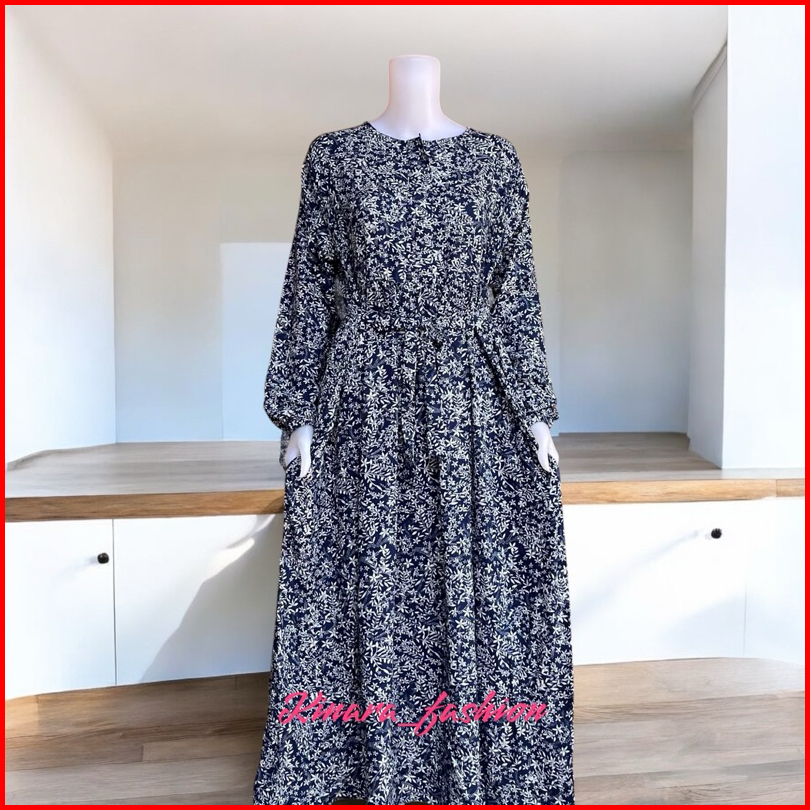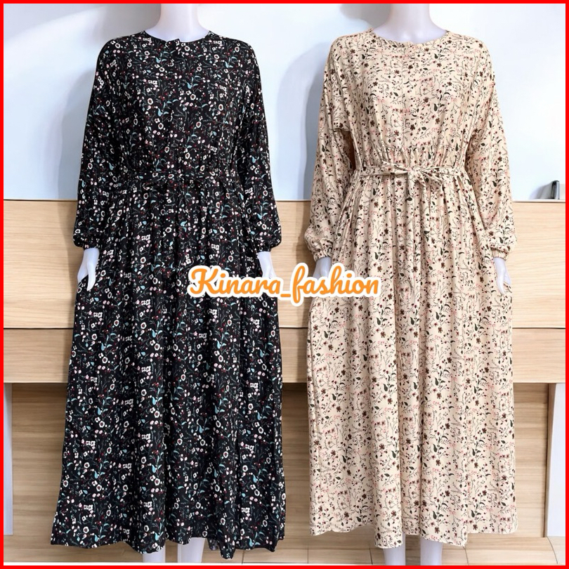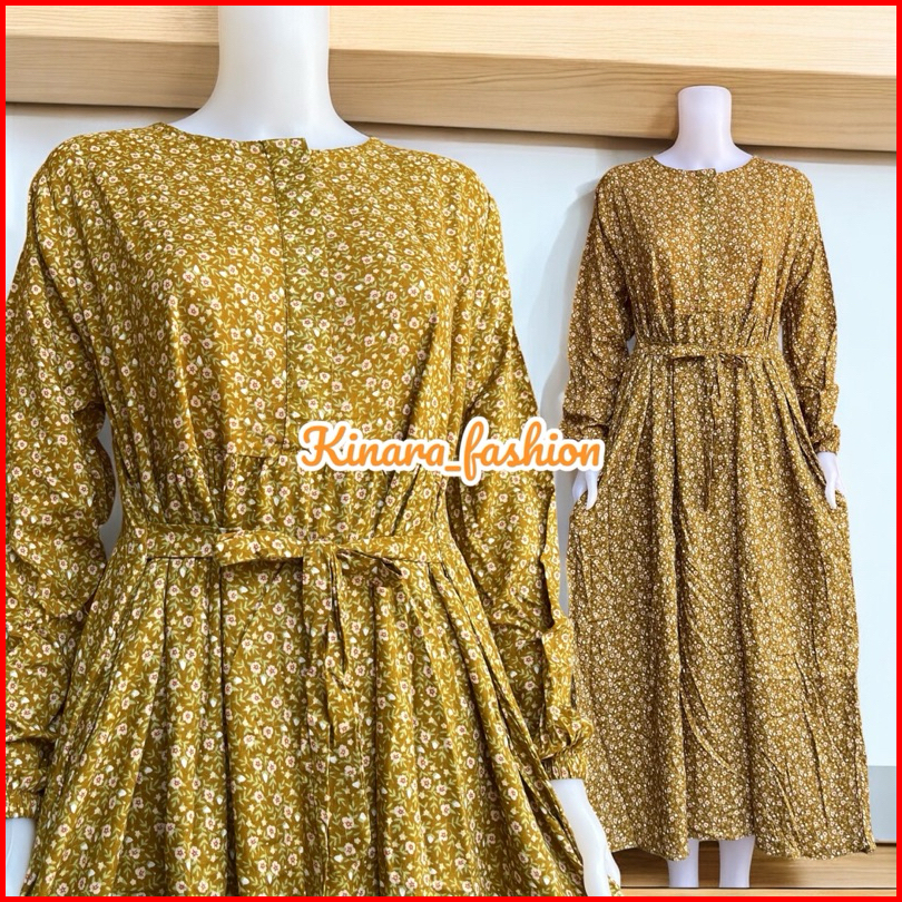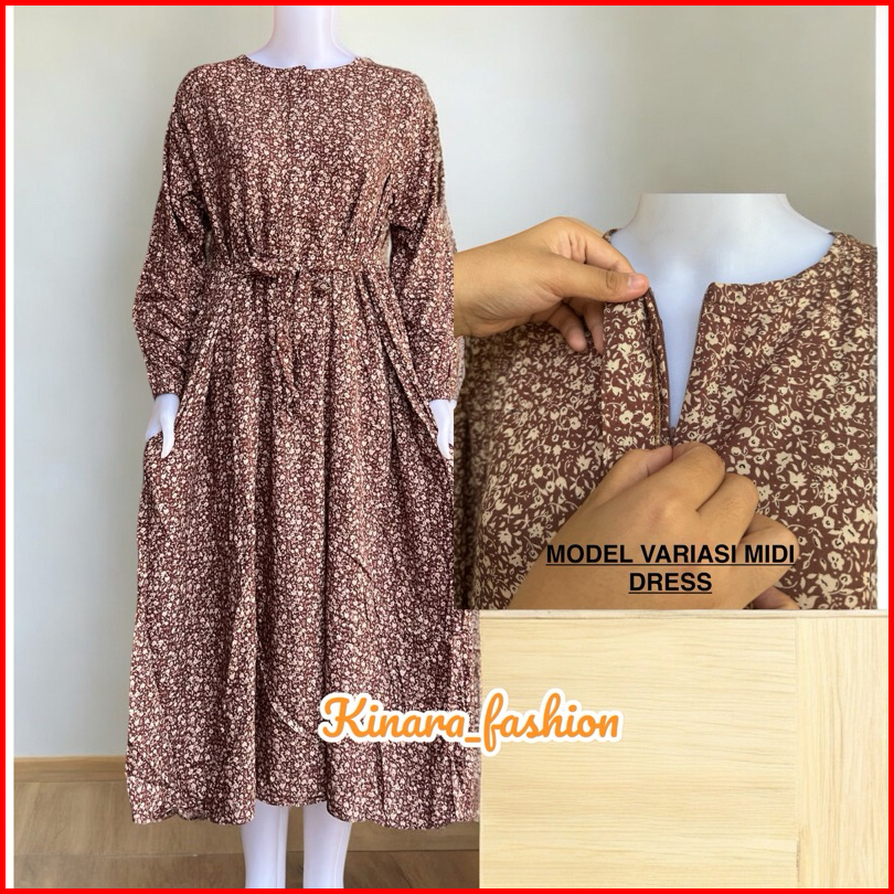 Midi Dress Rayon Premium Motif Bunga Kecil Busui Bye Kinara