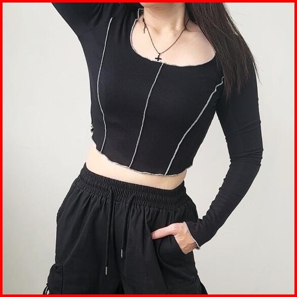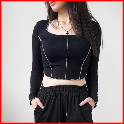 Yeri Crop Top Long Sleeve Crop Top Atasan Wanita