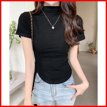 Ziell Top 6931 Crop Top Wanita Kaos Wanita Turtle Neck Atasan Wanita