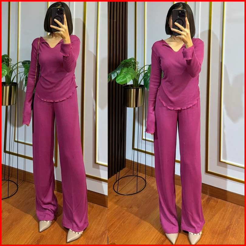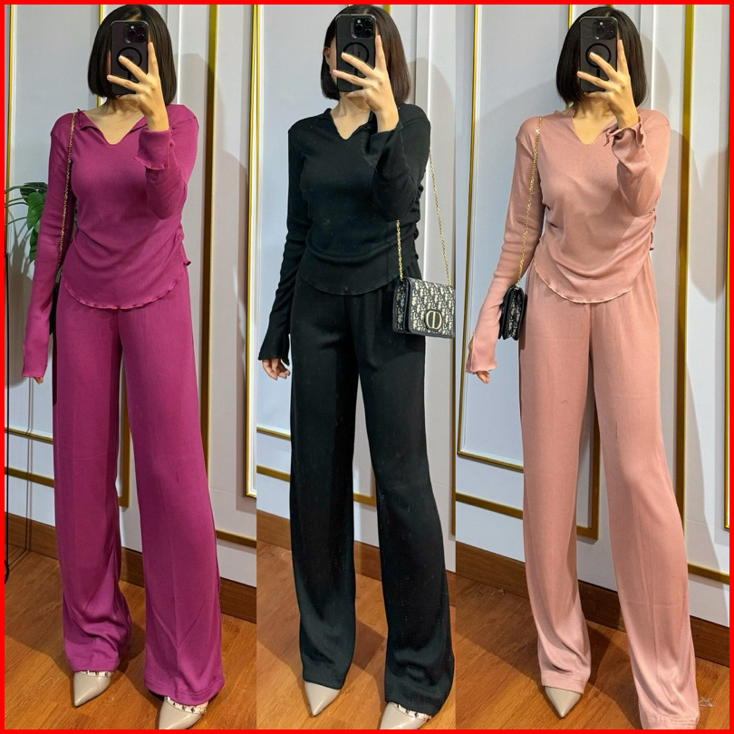 One Set Knit Setelan Wanita Oneset Lengan Panjang Pakaian Wanita Knit Premium