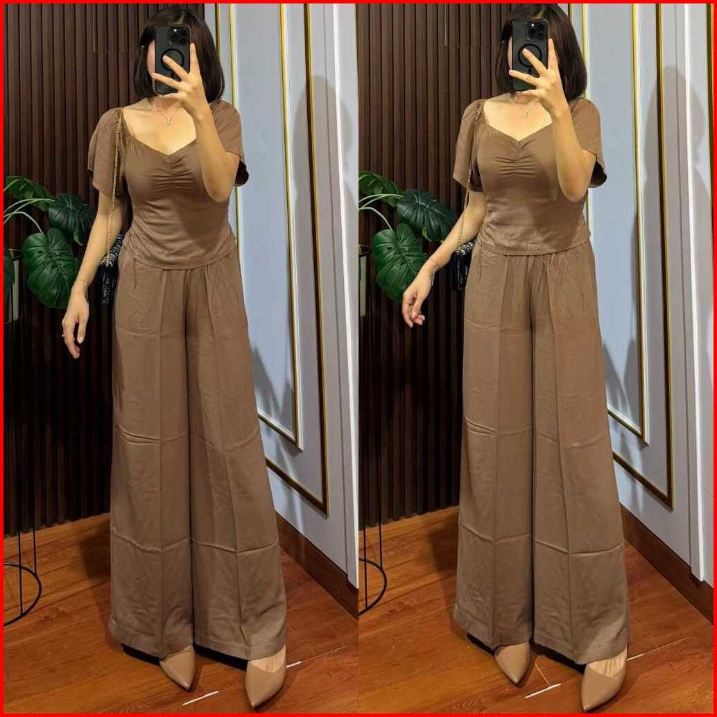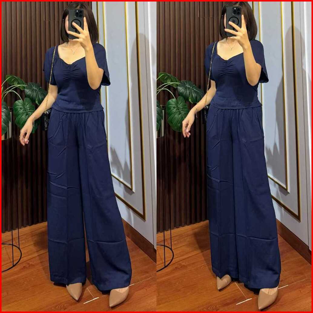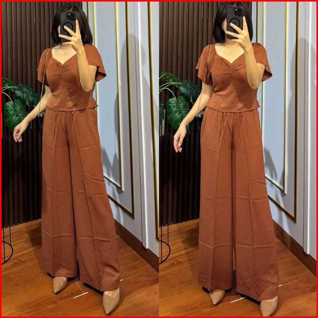 One Set Crop Top Sabrina Premium Rayon Pakaian Wanita Karet Belakang