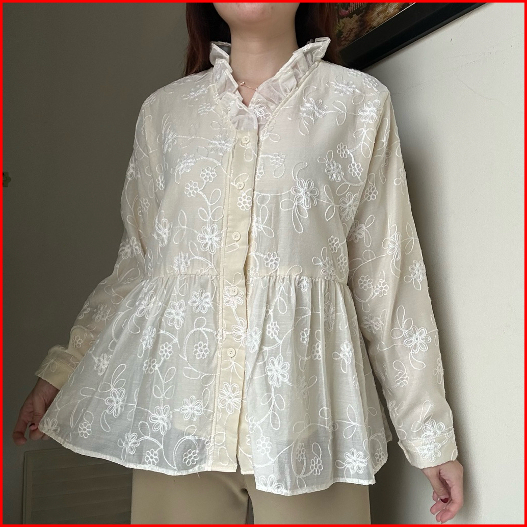 Rumi Bkk Top Atasan Blouse Wanita Kemeja Kerja Katun Organdi Bordir Korean Style By Biel The Label