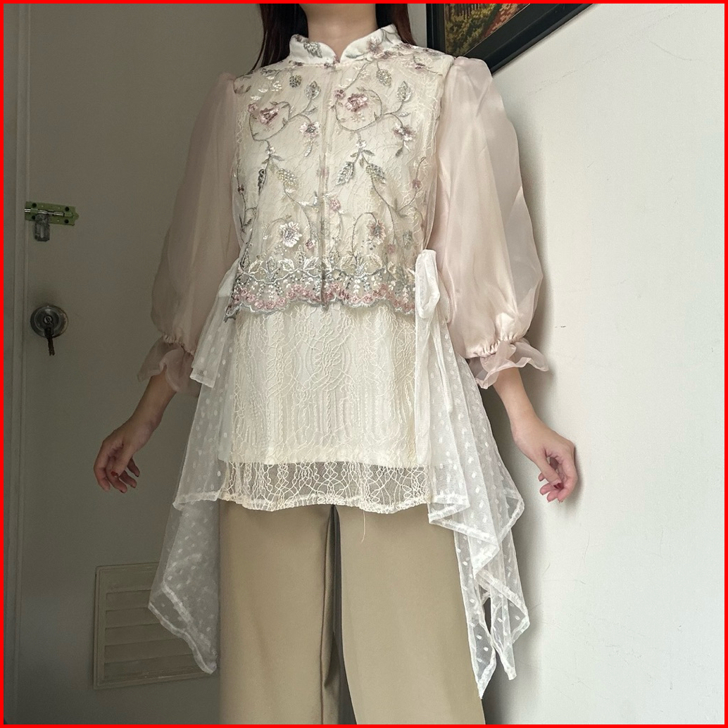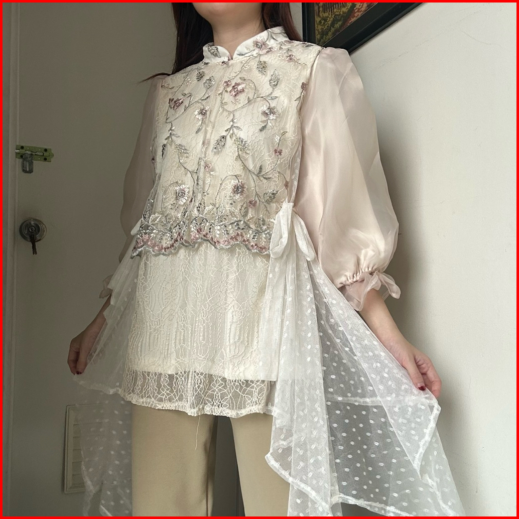 Quina Bkk Top Atasan Blouse Kemeja Wanita Tulle Bordir Brokat Renda Korean Style By Biel The Label