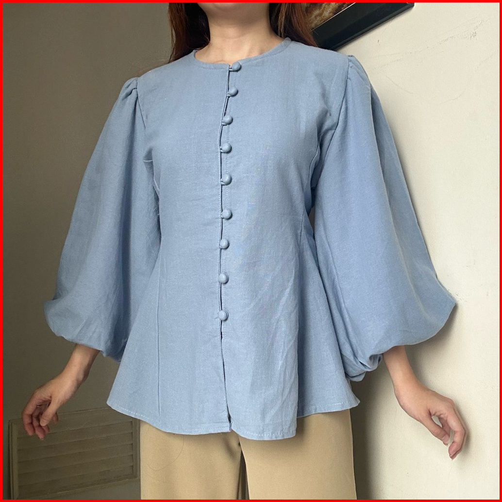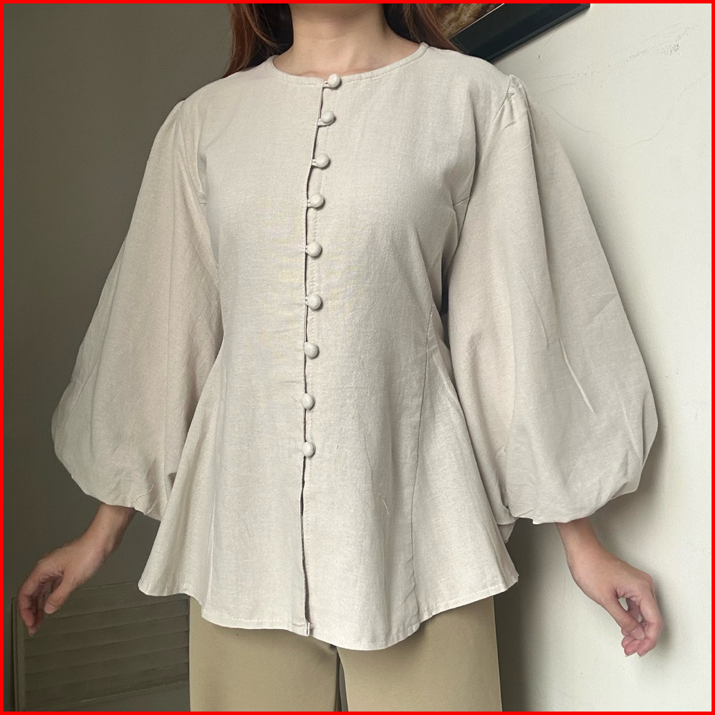 Astrid Top Atasan Kemeja Blouse Wanita Kerja Linen Tangan Balon Panjang Korean Style By Biel The Label