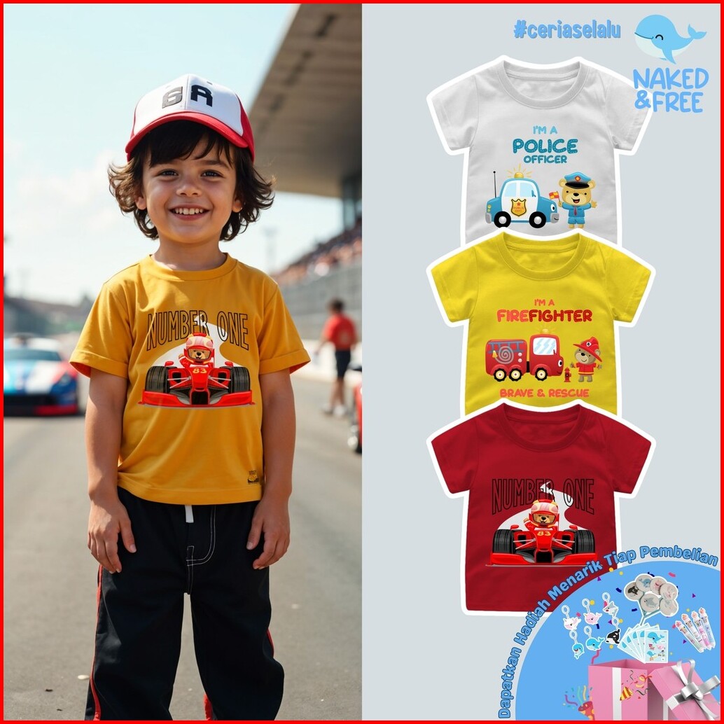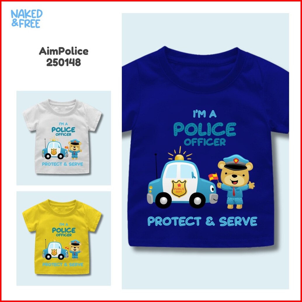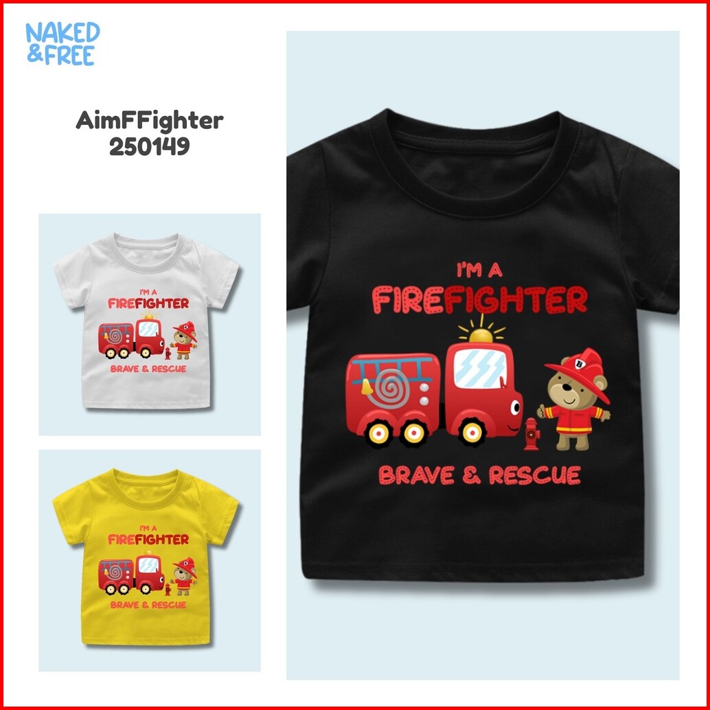 Naked Free Baju Kaos Anak Laki-laki Transport Series Police And Fire Fighter Bahan Katun Combed