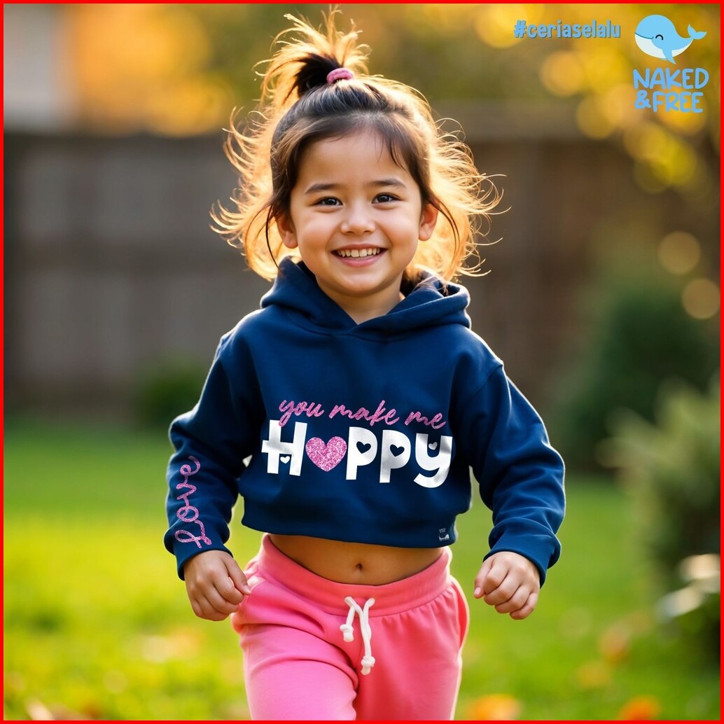 Naked Free Croptop Hoodie Anak Perempuan Typography Series Make Me Happy Bahan Baby Terry Typ-01