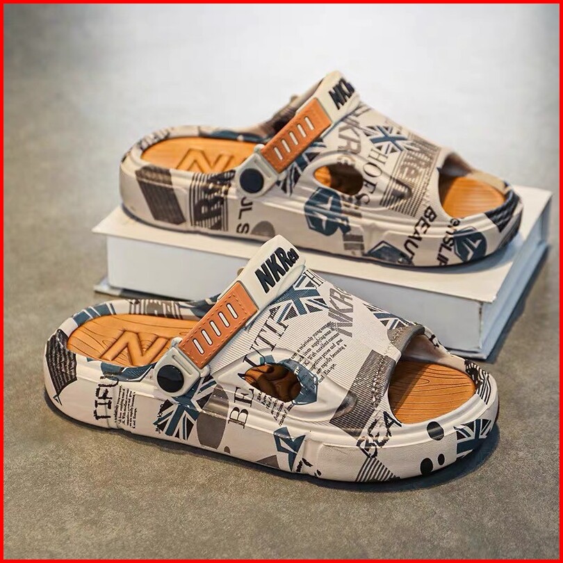 Sandal Pria Terbaru 2025 Dengan Gaya Korea Sol Karet Tali Belakang Dan Anti-selip Hitam Sandal Pria