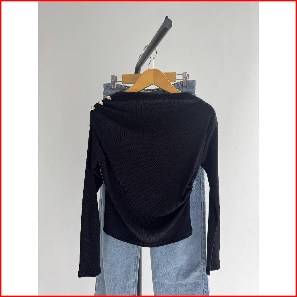 Adlyn Blouse Knit - Atasan Wanita Crop Knit Kancing