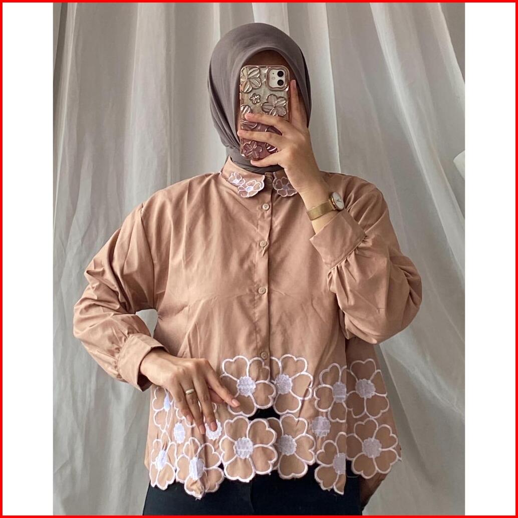 Hana Kemeja Bordir Bunga - Atasan Wanita Kemeja Bordir