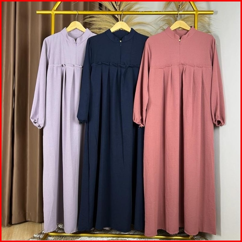 Gamis Crinkle Wanita Terbaru Crinkle Airflow Variasi Rempel Dada