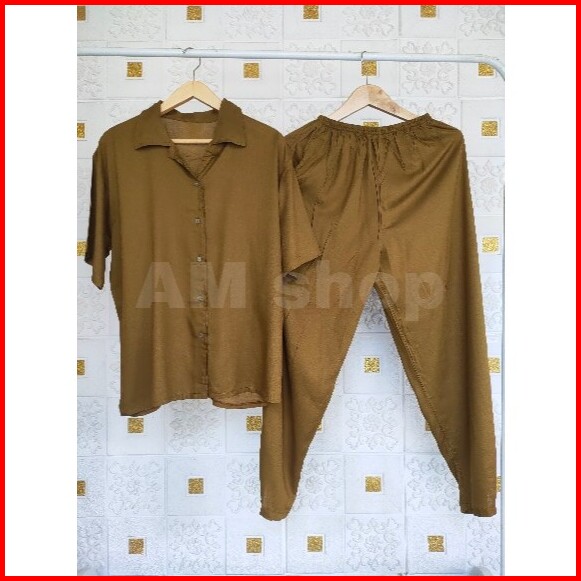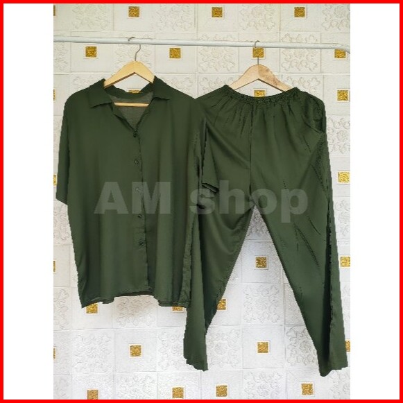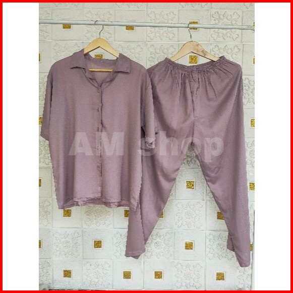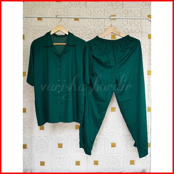 One Set Vinetta Lengan Pendek Full Kancing Baju Tidur Rayon Set Setelan Baju Tidur Set Piyama Rayon Polos