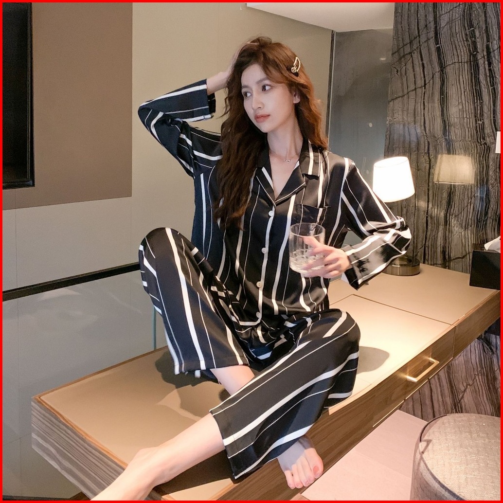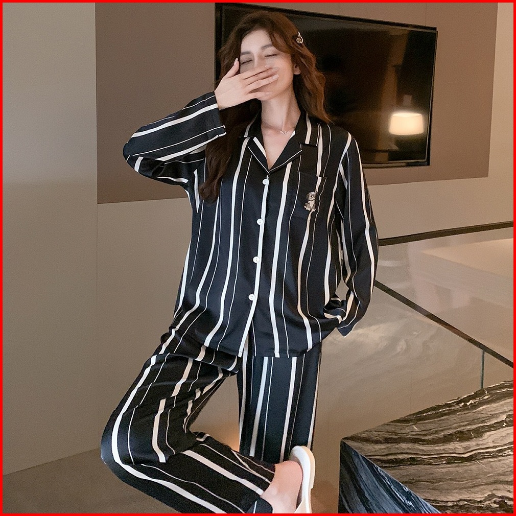 026 Ultra Luxury Sleepwear Kelas Atas Piyama Satin Lengan Panjang Celana Panjang Motif Kancing Hidup Satin High Quality