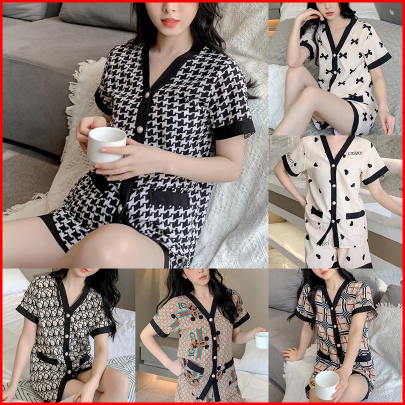 Terbaru Piyama Wanita Kancing Design Pearl Celana Pendek Lengan Pendek Import Best Quality Baju Tidur Piyama Piyama Wani
