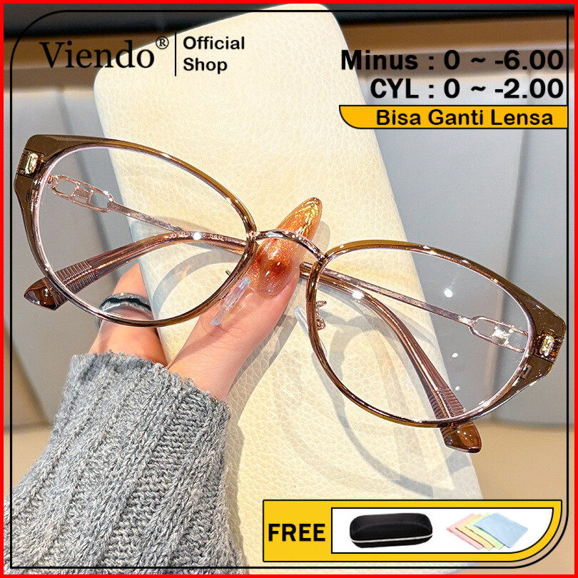 Viendo Kacamata Minus Anti Blueray Photocromic Wanita Cet Eye Frame Bluecromic Kaca Mata Optik 32006