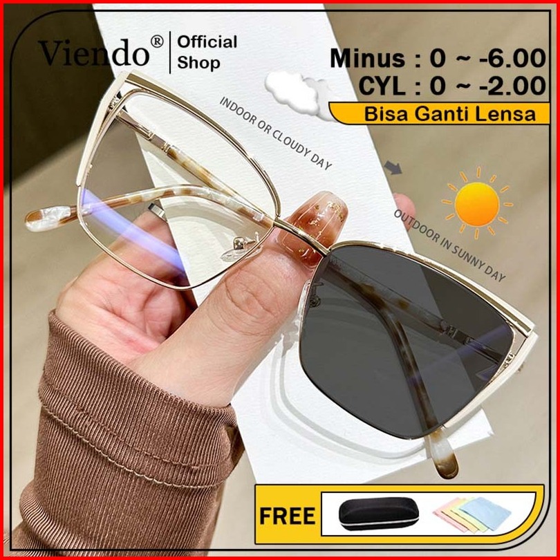 Viendo Kacamata Photocromic Minus Wanita Cat Eye Silinder Bluecromic Anti Blueray Kaca Mata Optik