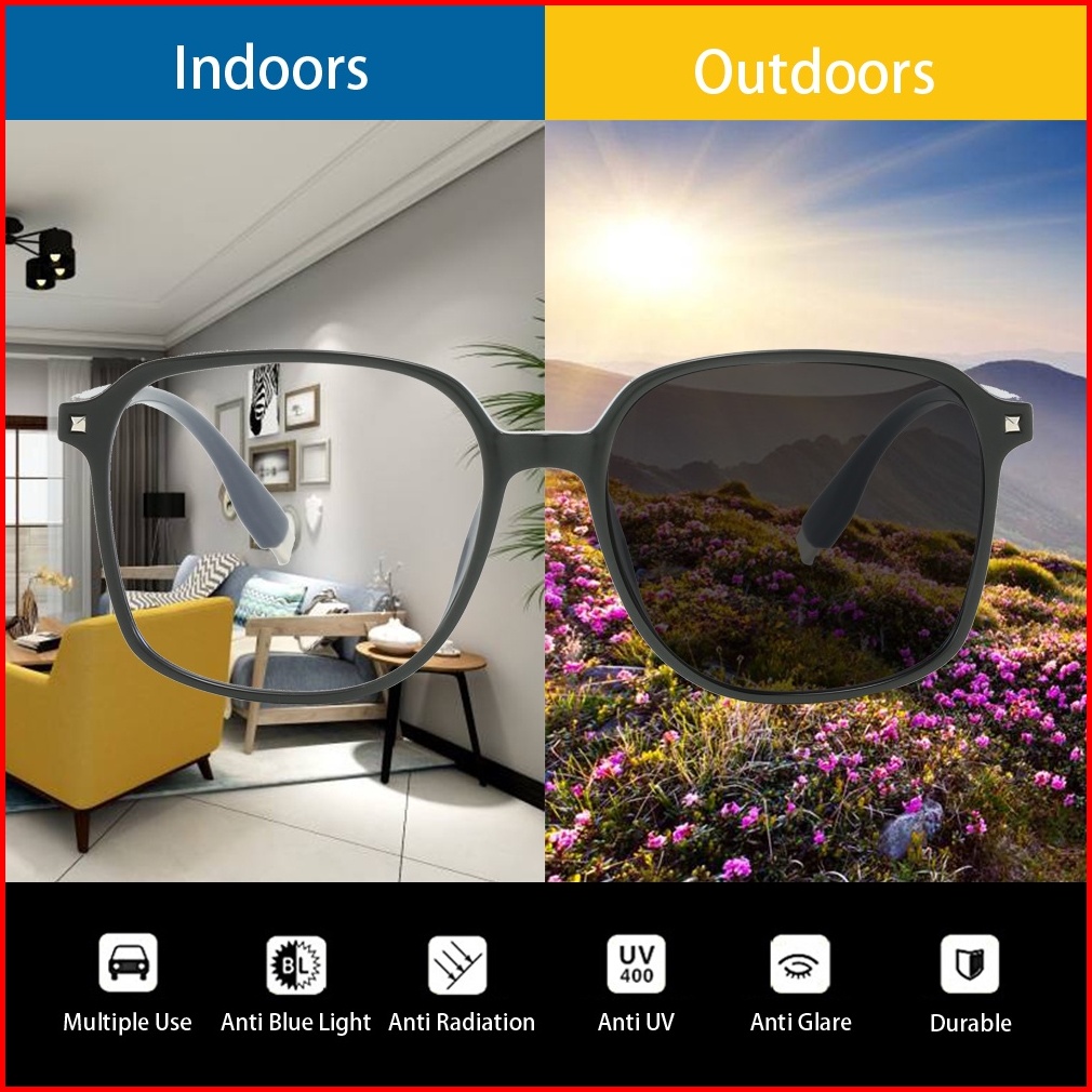 Frame Kacamata Minus Photocromic Anti Radiasi Kotak Tr90 Wanita Uv400 Fotocromic Anti Sinar Matahari Potocromic