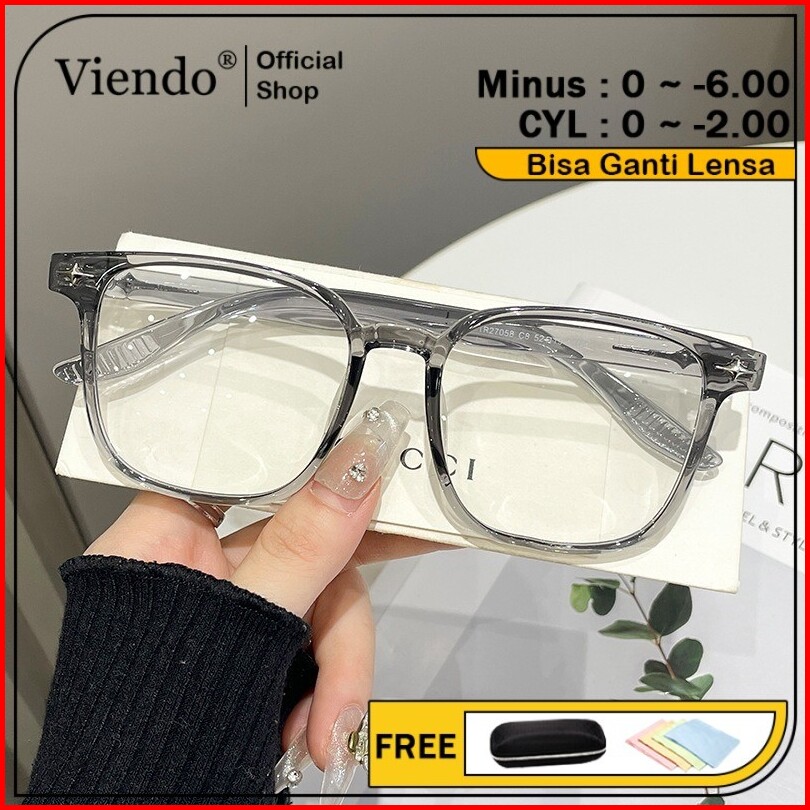Viendo Kacamata Anti Blueray Photocromic Minus Pria Wanita Bluecromic Kaca Mata Optik Frame 27058