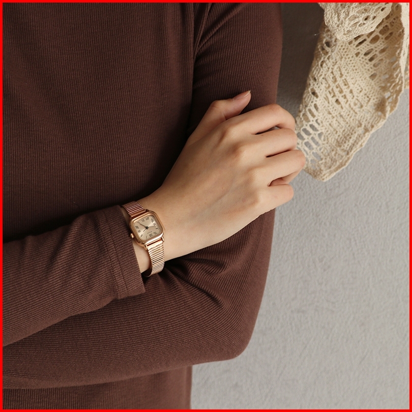 Holek 7112 Jam Tangan Wanita Anti Air Mewah Indah Stainless Steel Persegi Jam Tangan Cewek Rantai