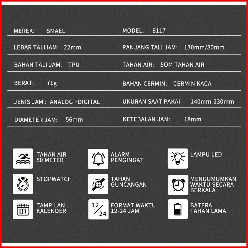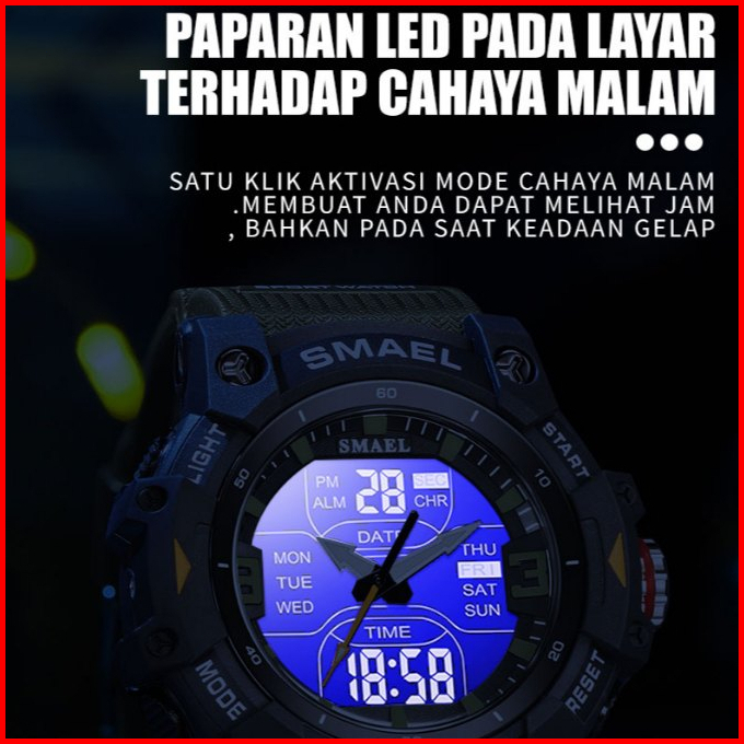 Smael 8117 Jam Tangan Olahraga Pria Dengan Pencahayaan Malam Tahan Air Cocok Untuk Berenang