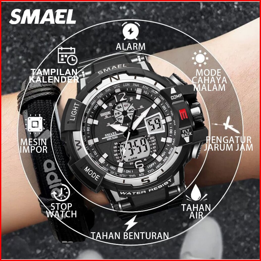 Smael 1376c Jam Tangan Taktis Multifungsi Tahan Air Dengan Lampu Penerangan Dan Alarm Untuk Pria